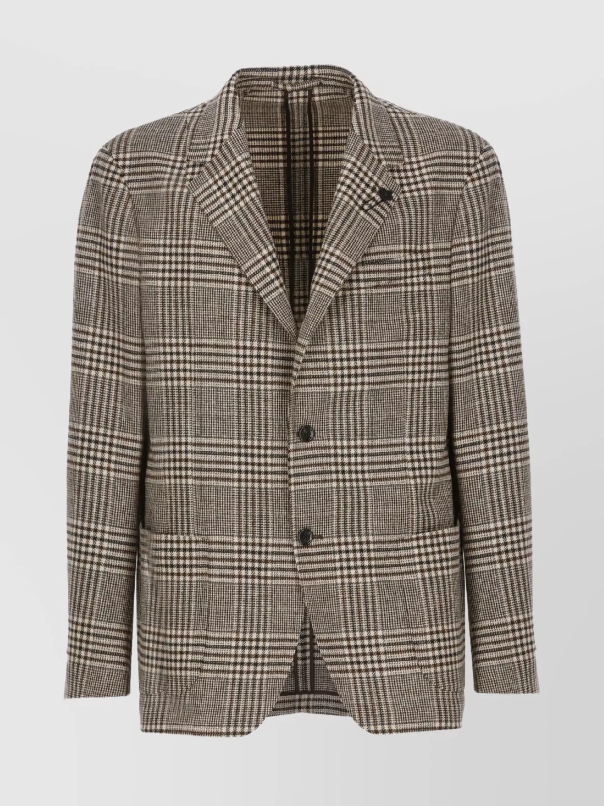 Lardini single-breasted houndstooth lapel jacket with brooch