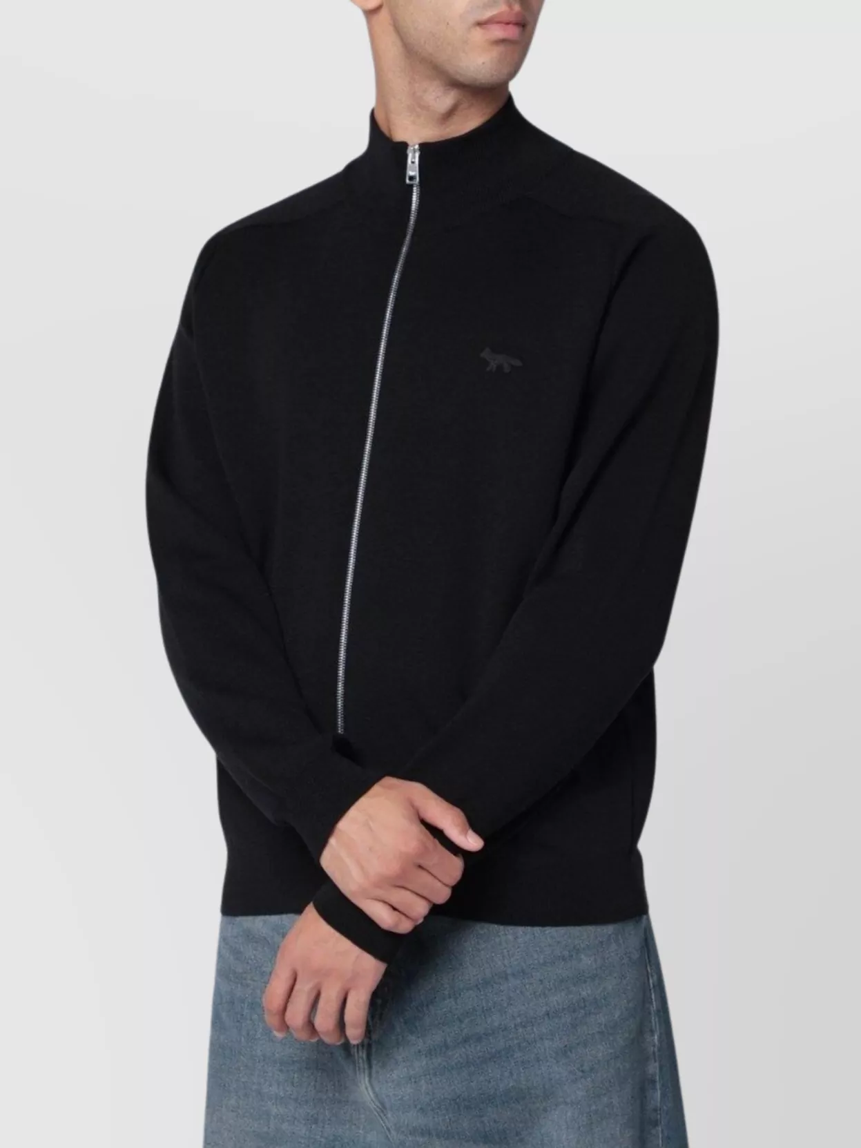 Maison Kitsuné wool zip cardigan with ribbed cuffs and hem