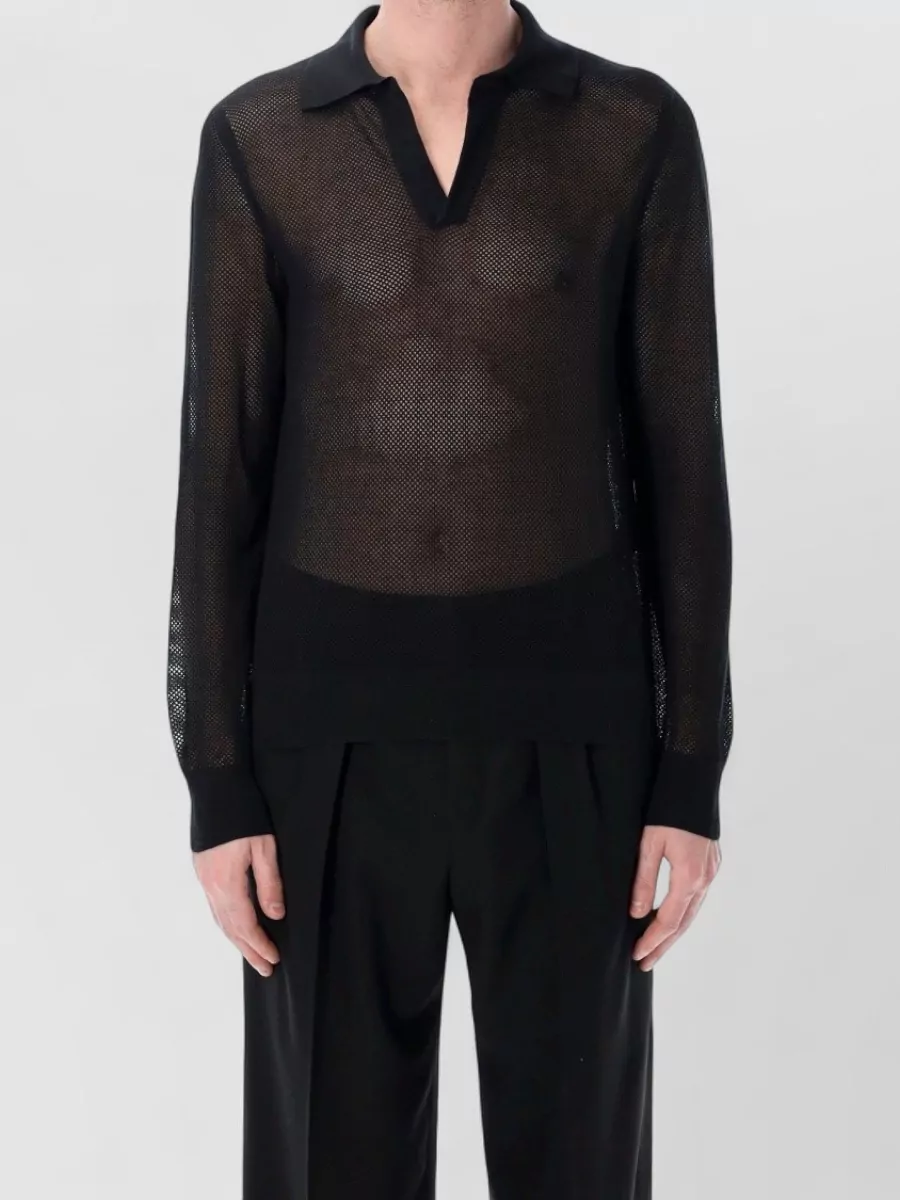 fine-knit wool long-sleeve polo shirt