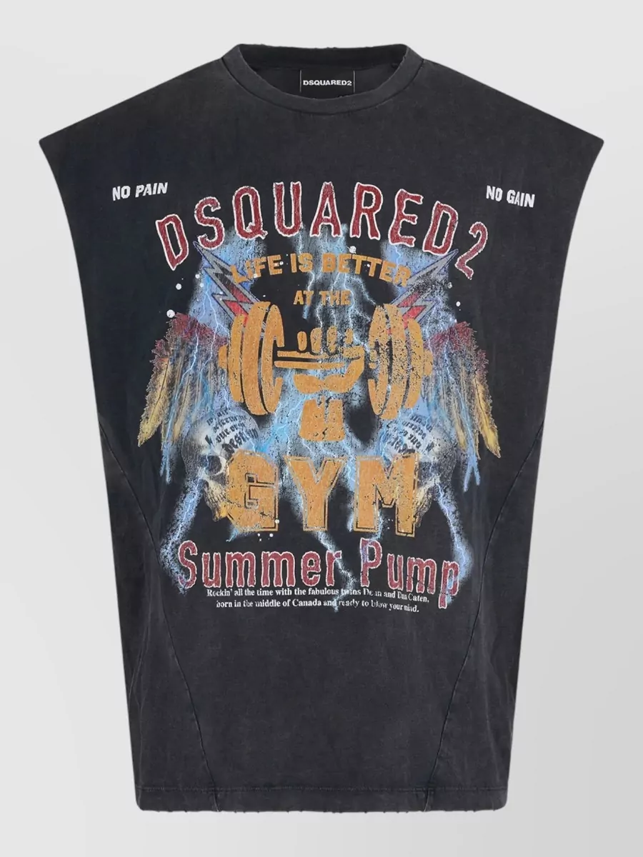 Dsquared2 sleeveless crew neck washed graphic tshirt