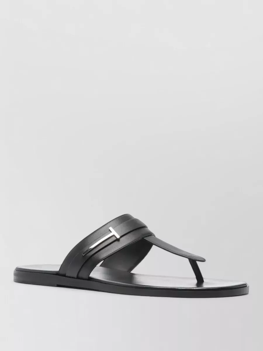 Saint Laurent cassandre flat leather t strap sandals