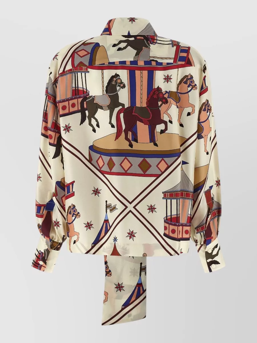 Alberto Biani silk printed high-neck long-sleeve blouse