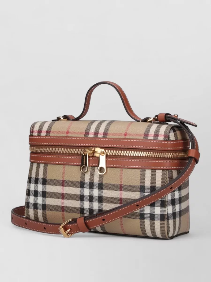 Burberry plaid top handle crossbody bag detachable strap