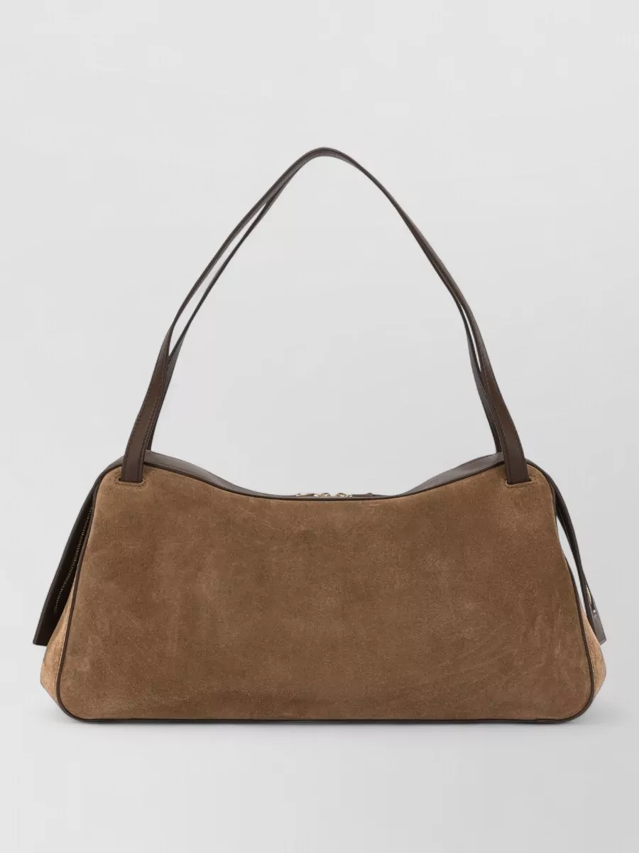 rectangular suede shoulder bag double handles trim