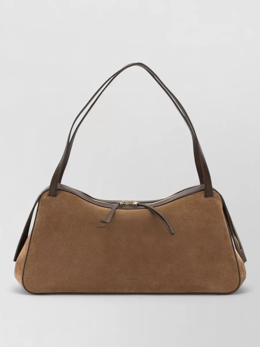 Jil Sander rectangular suede shoulder bag double handles trim
