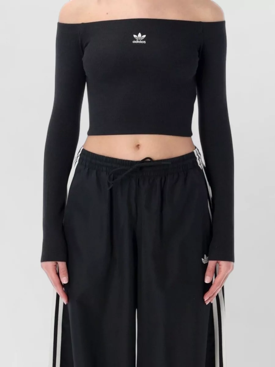 Adidas Originals off shoulder long sleeve ribbed crop top