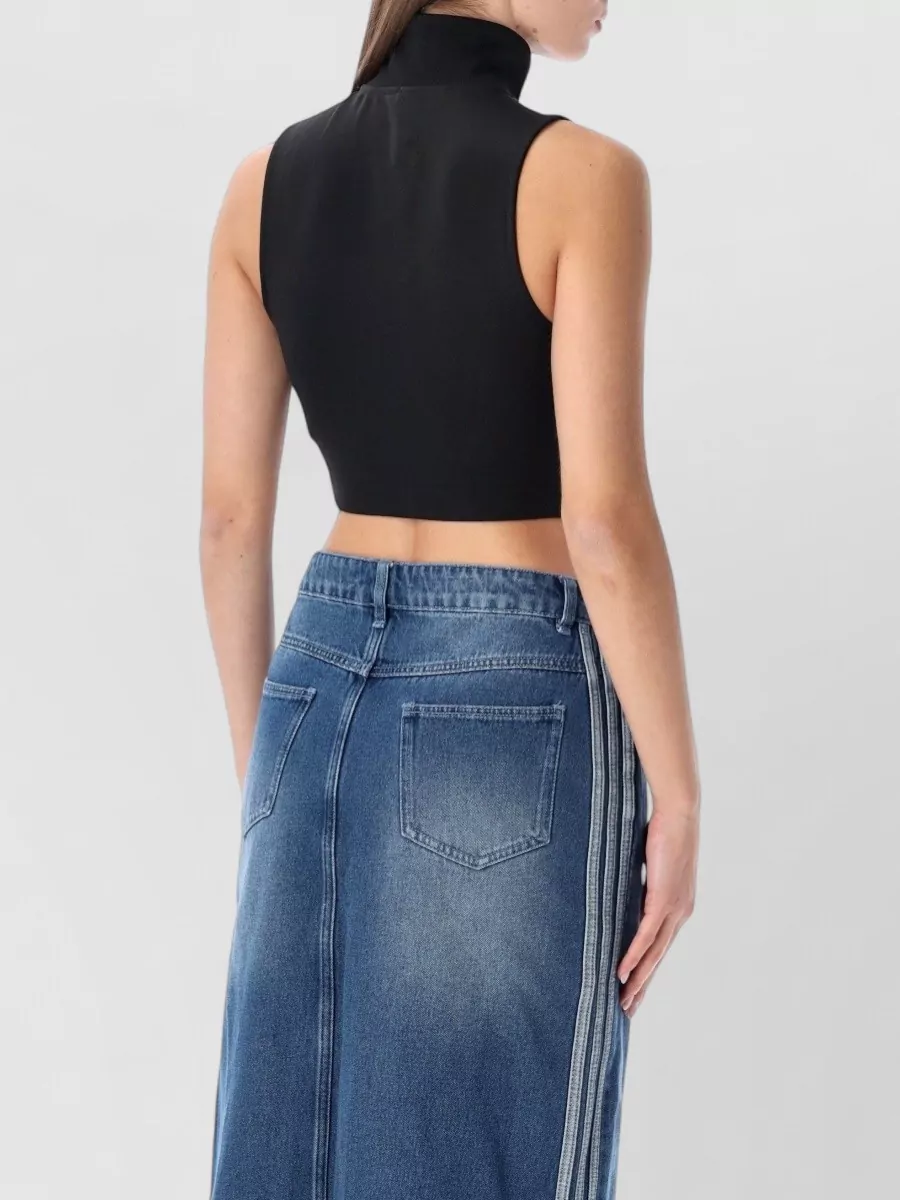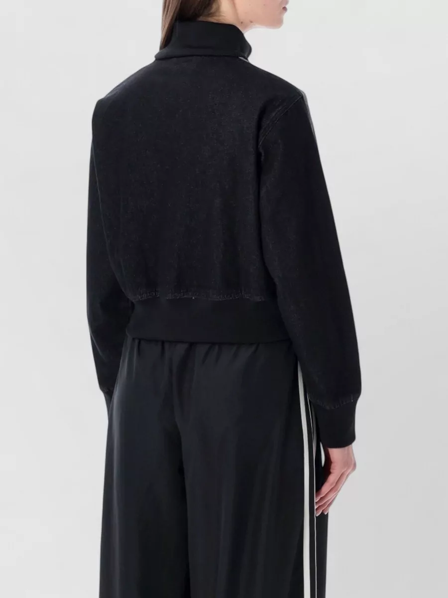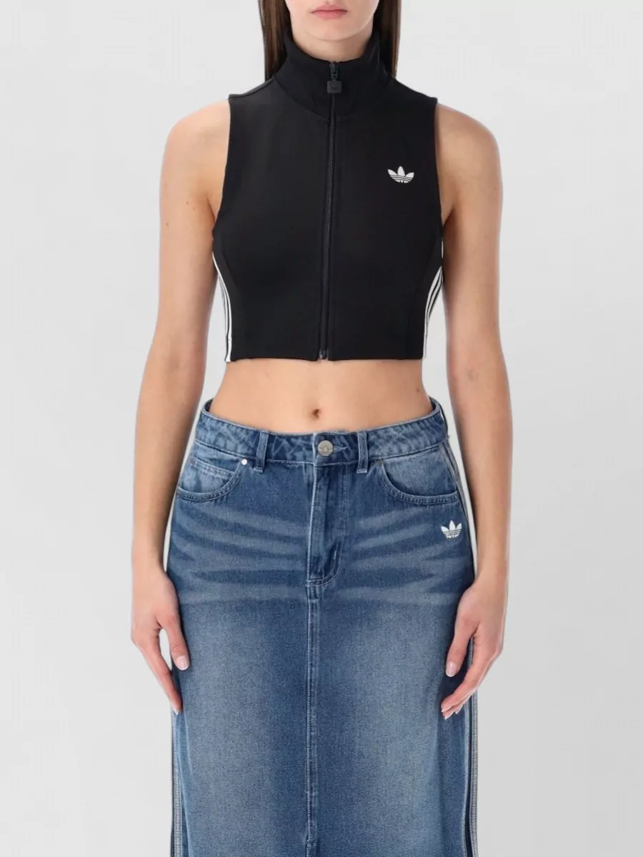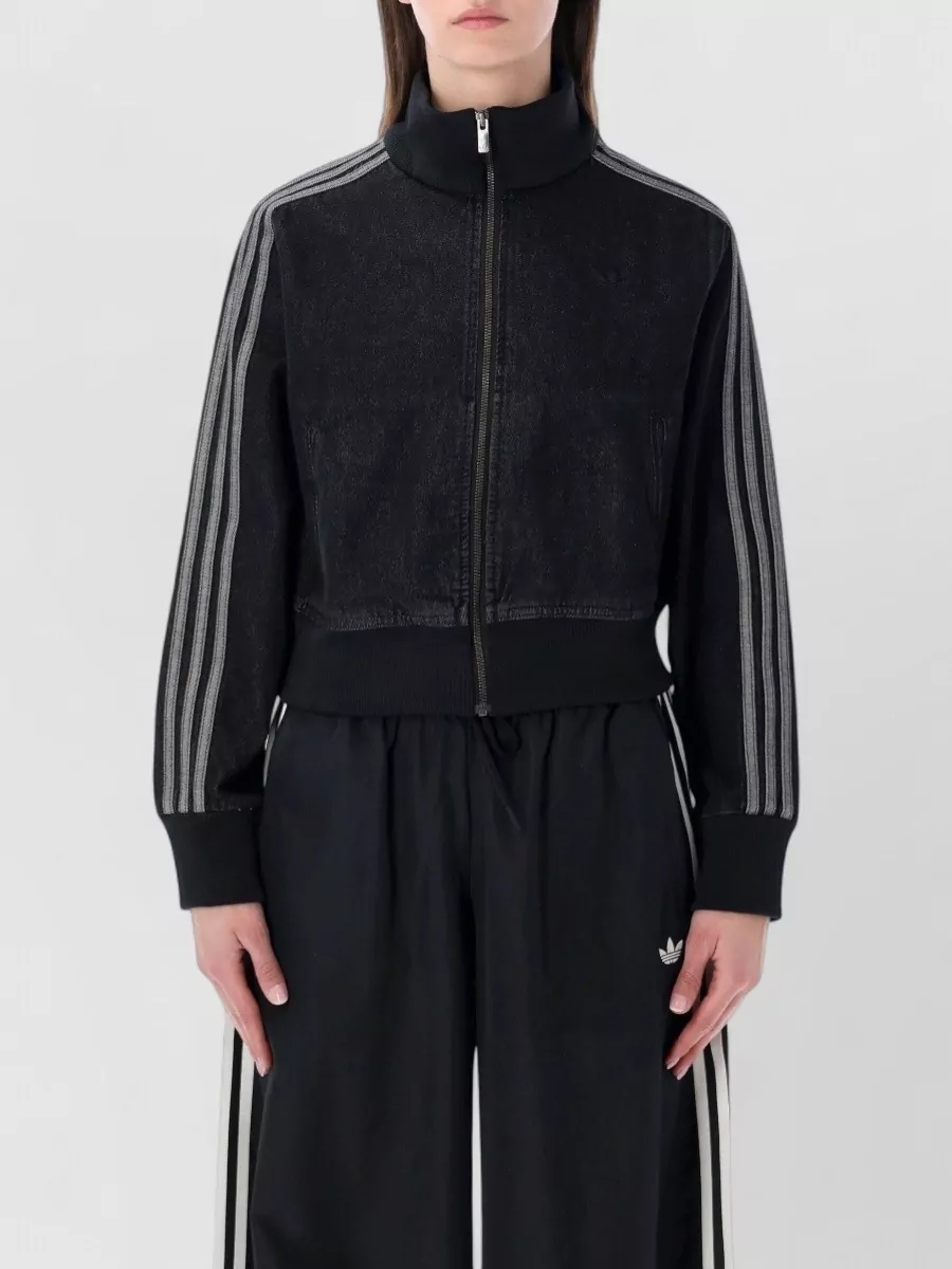 Adidas Originals denim bomber jacket high collar striped sleeves