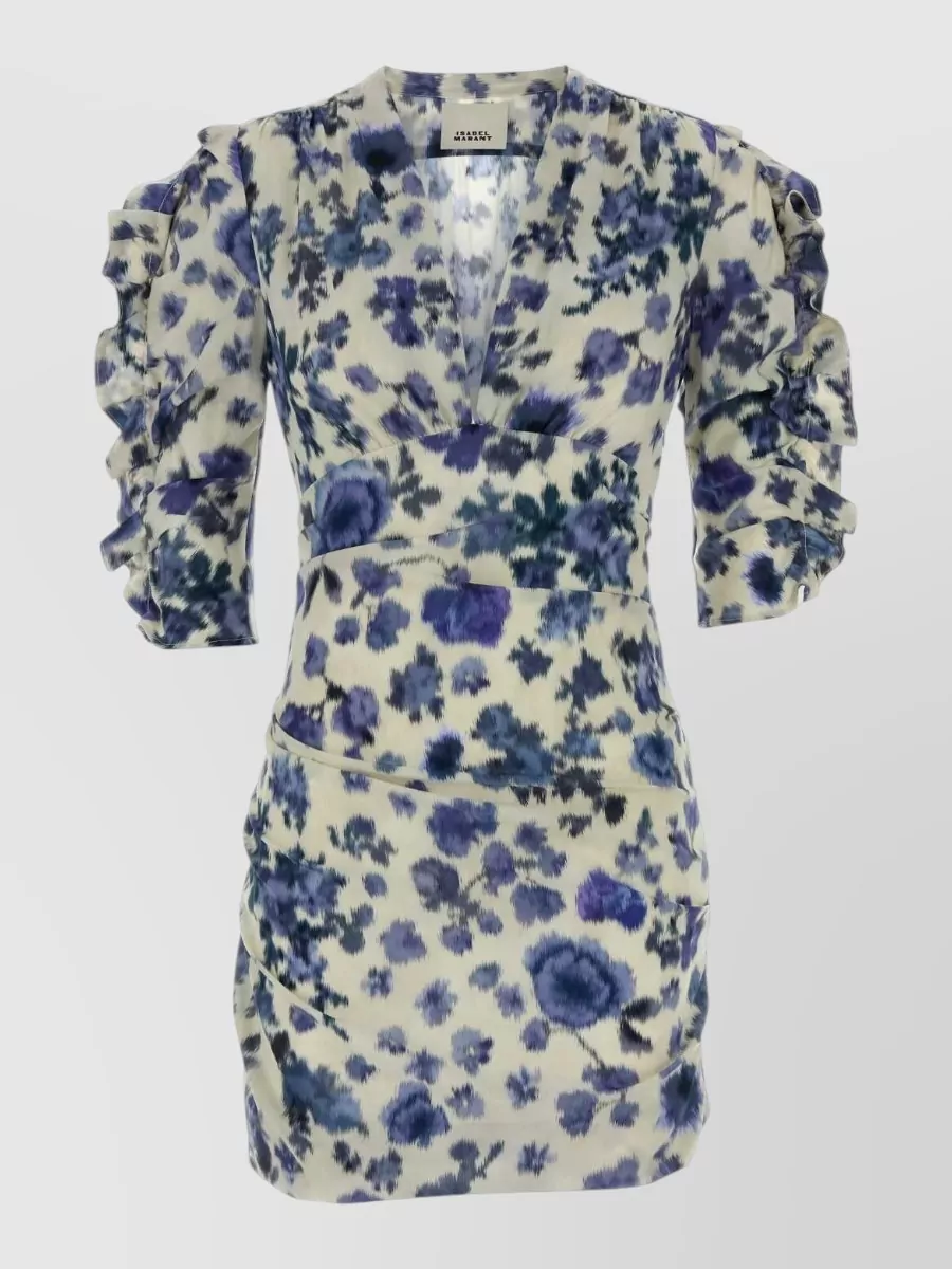 Isabel Marant doris stretch silk dress floral ruffles mini