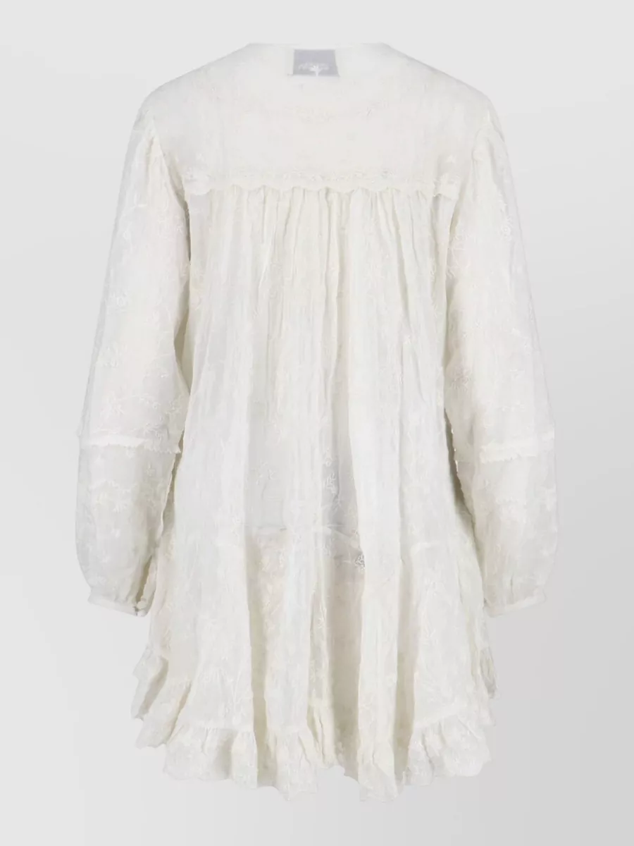 knee length dress ruffle hem embroidery