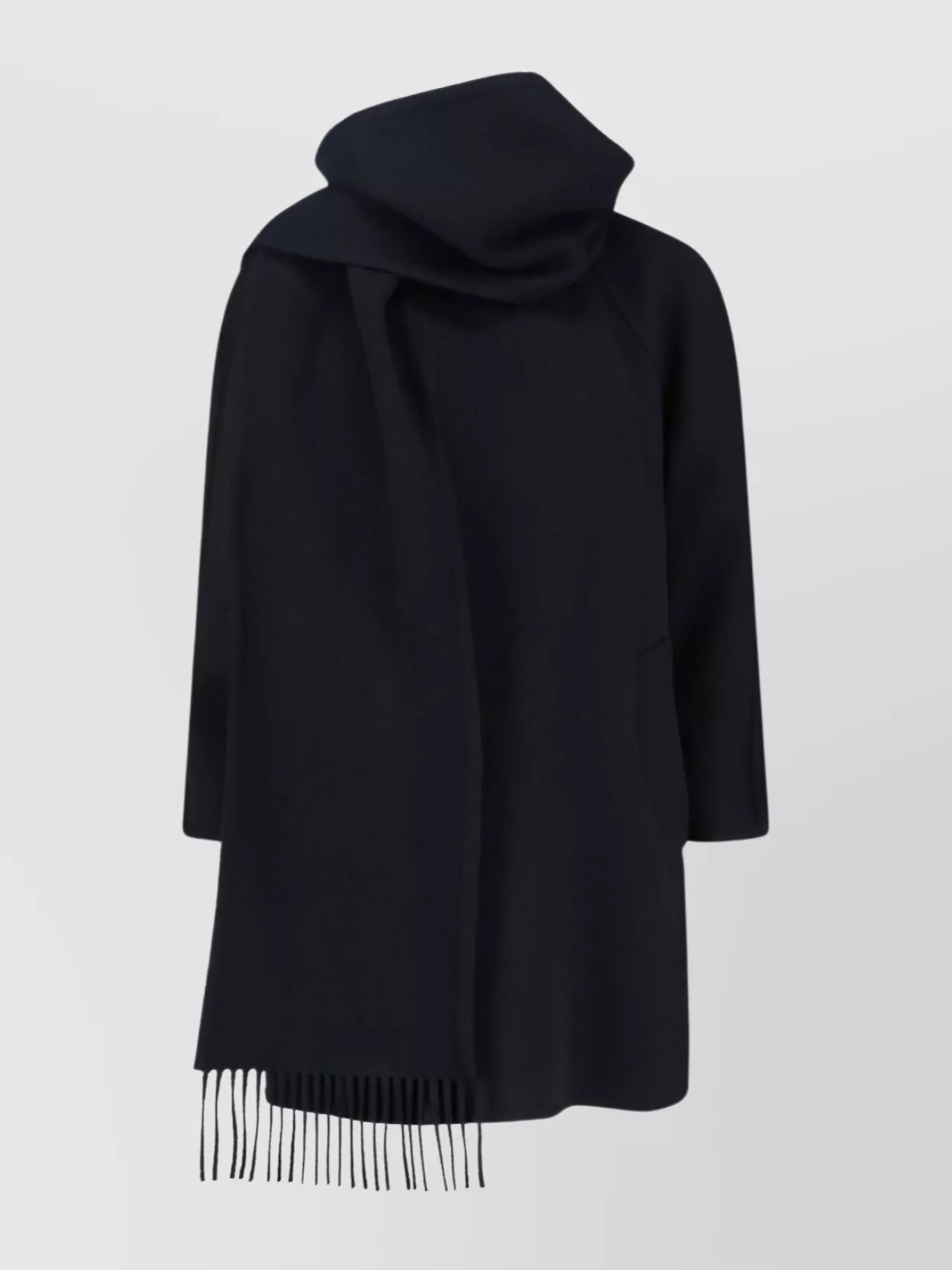 wool overcoat with belted waist and fringe detailing