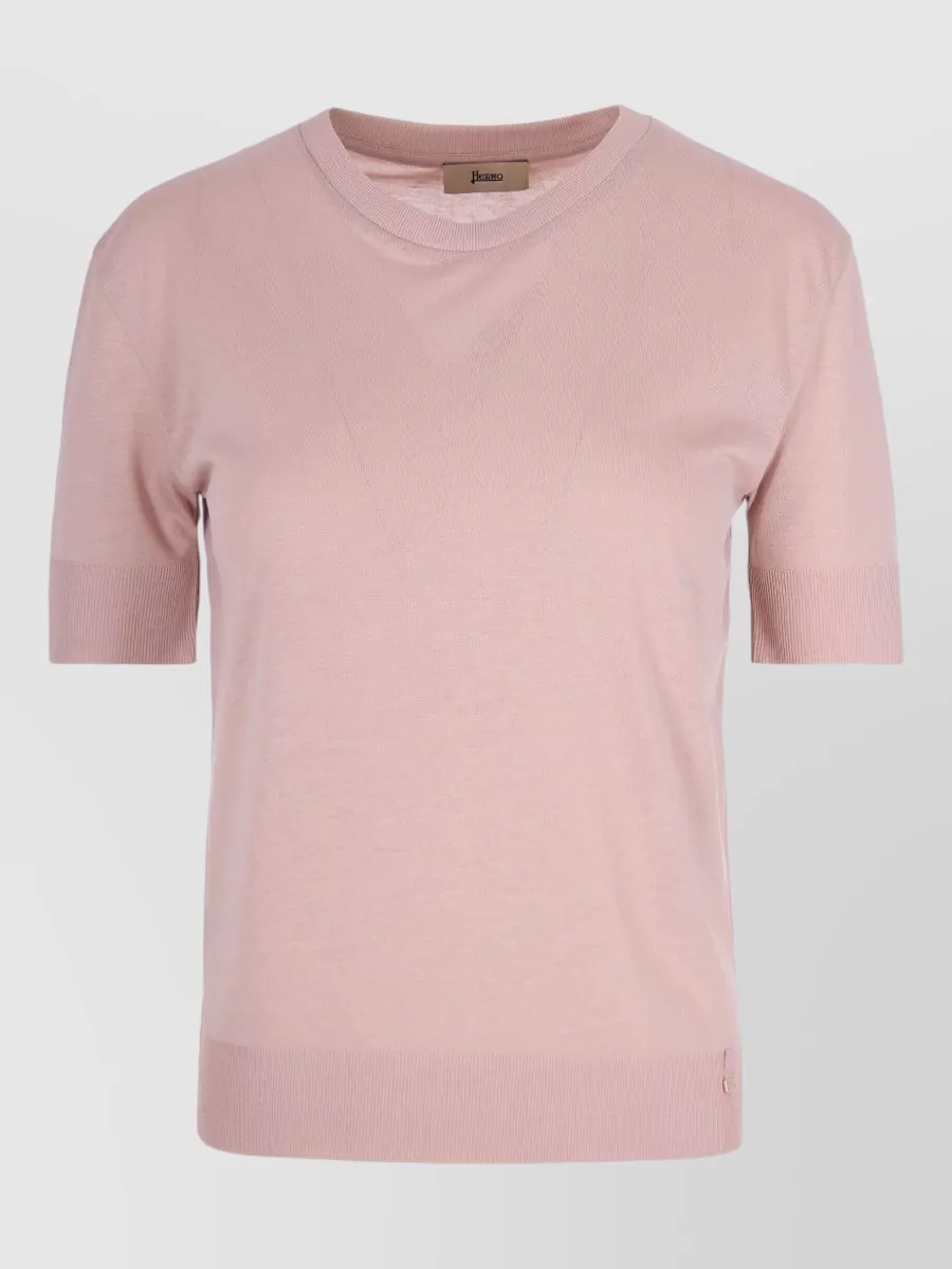 Gently follows the bust and waist with a classic crew-neck shape and short sleeves