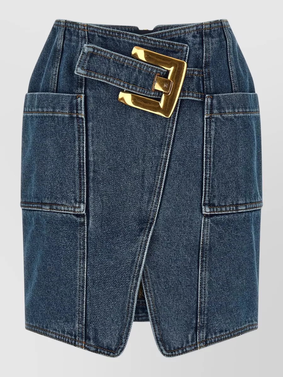 Balmain denim skirt featuring pockets and button accents