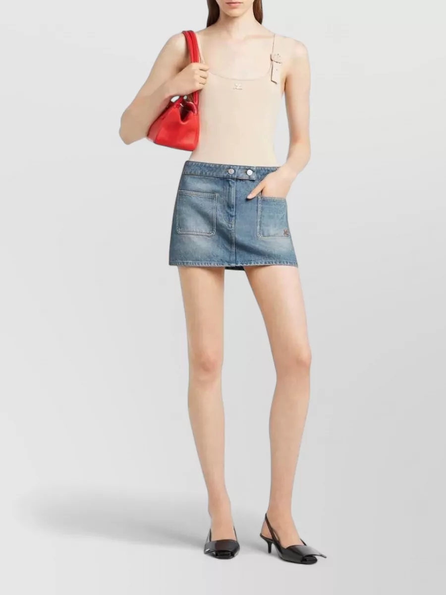 Courrèges signature denim mini skirt front pockets