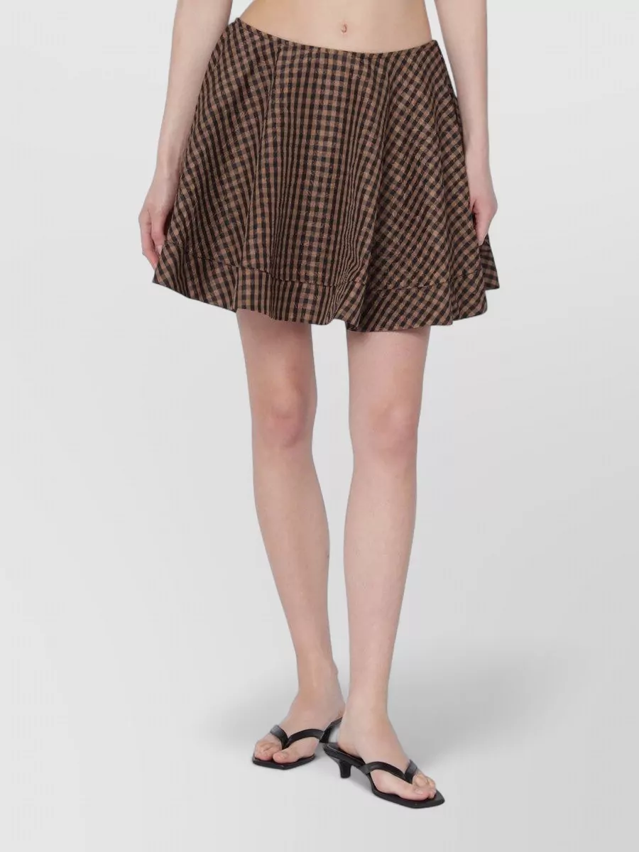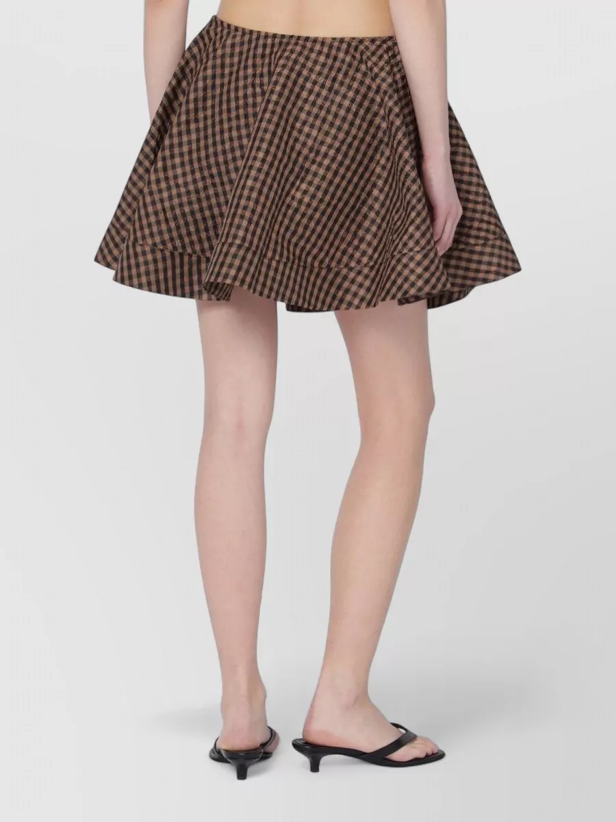 Ganni gingham check flared high waist mini skirt