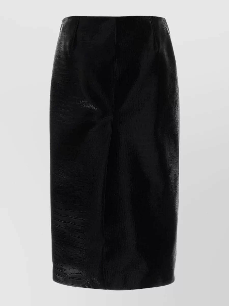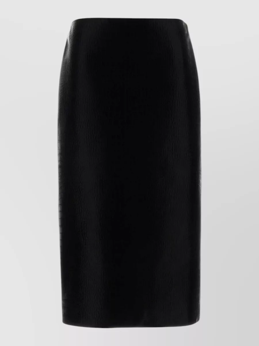 textured crocodile effect straight midi skirt