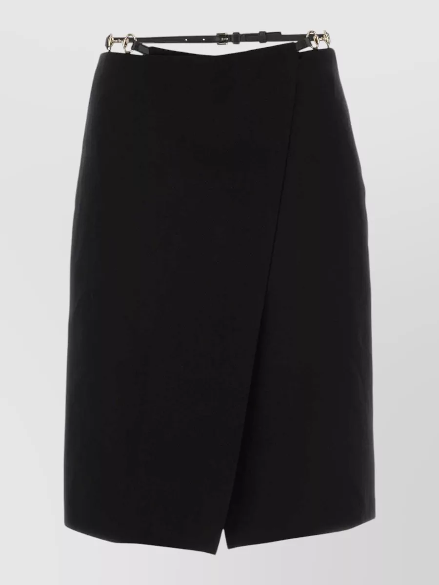 Gucci wool skirt belted waist wrap design
