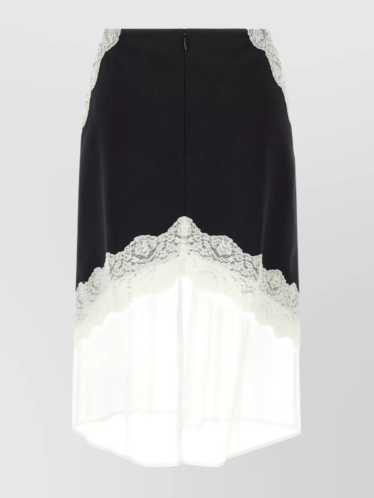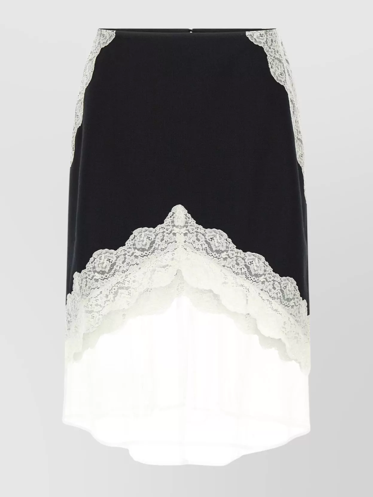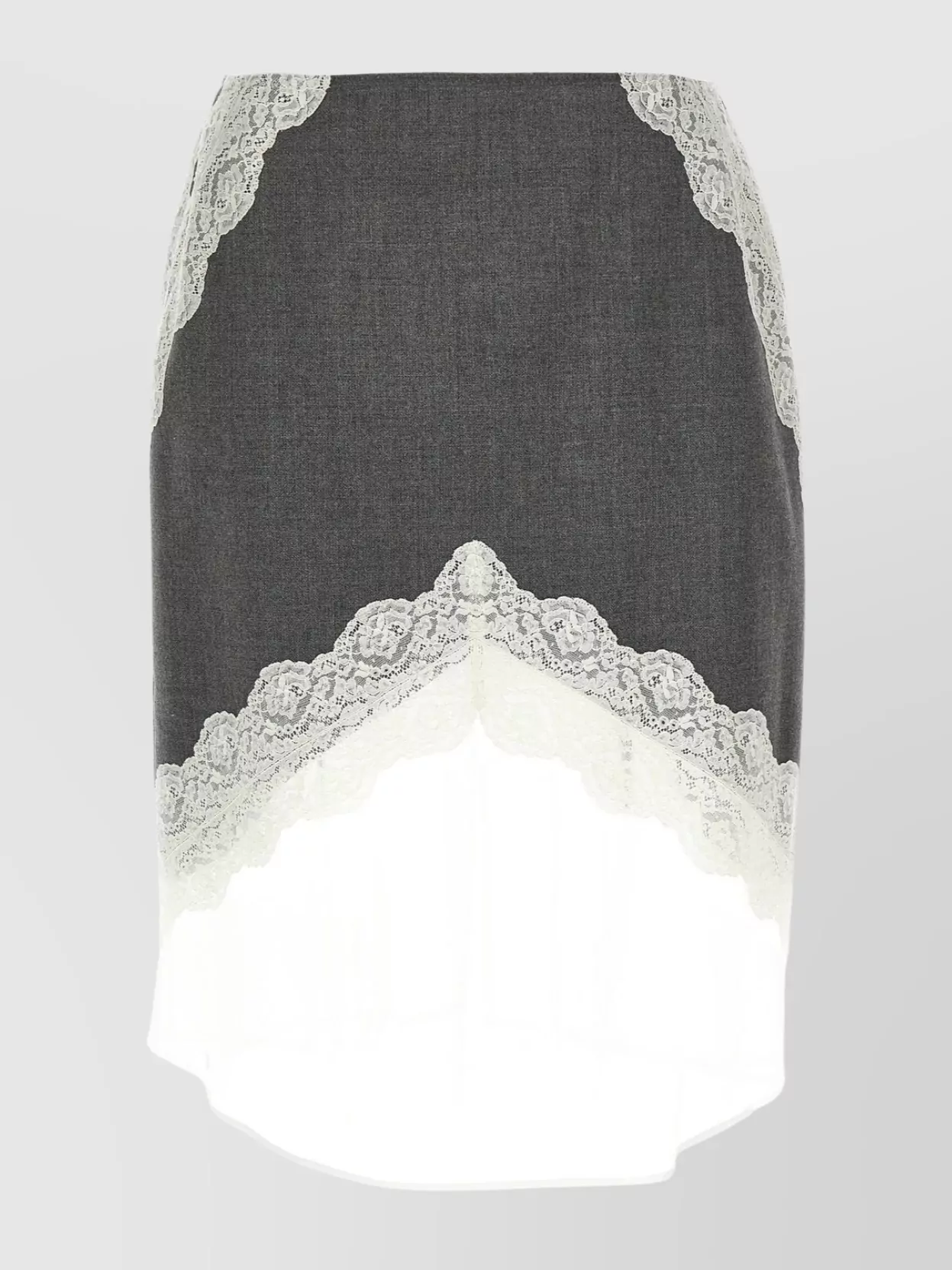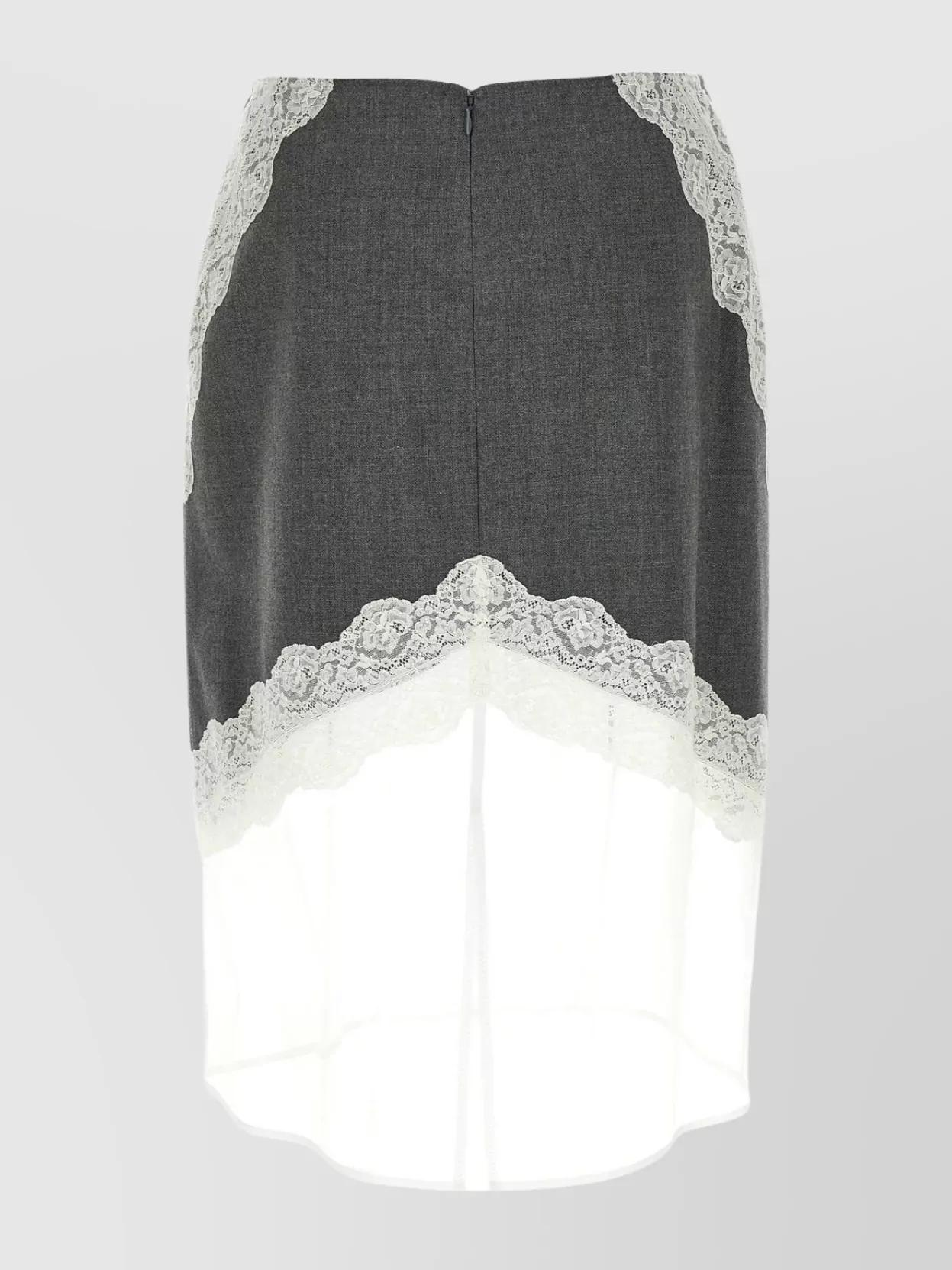 asymmetric lace wool skirt with sheer overlay