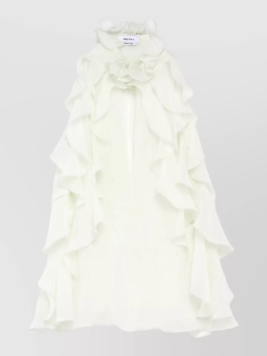 Alexander McQueen sleeveless high neck sheer top ruffles