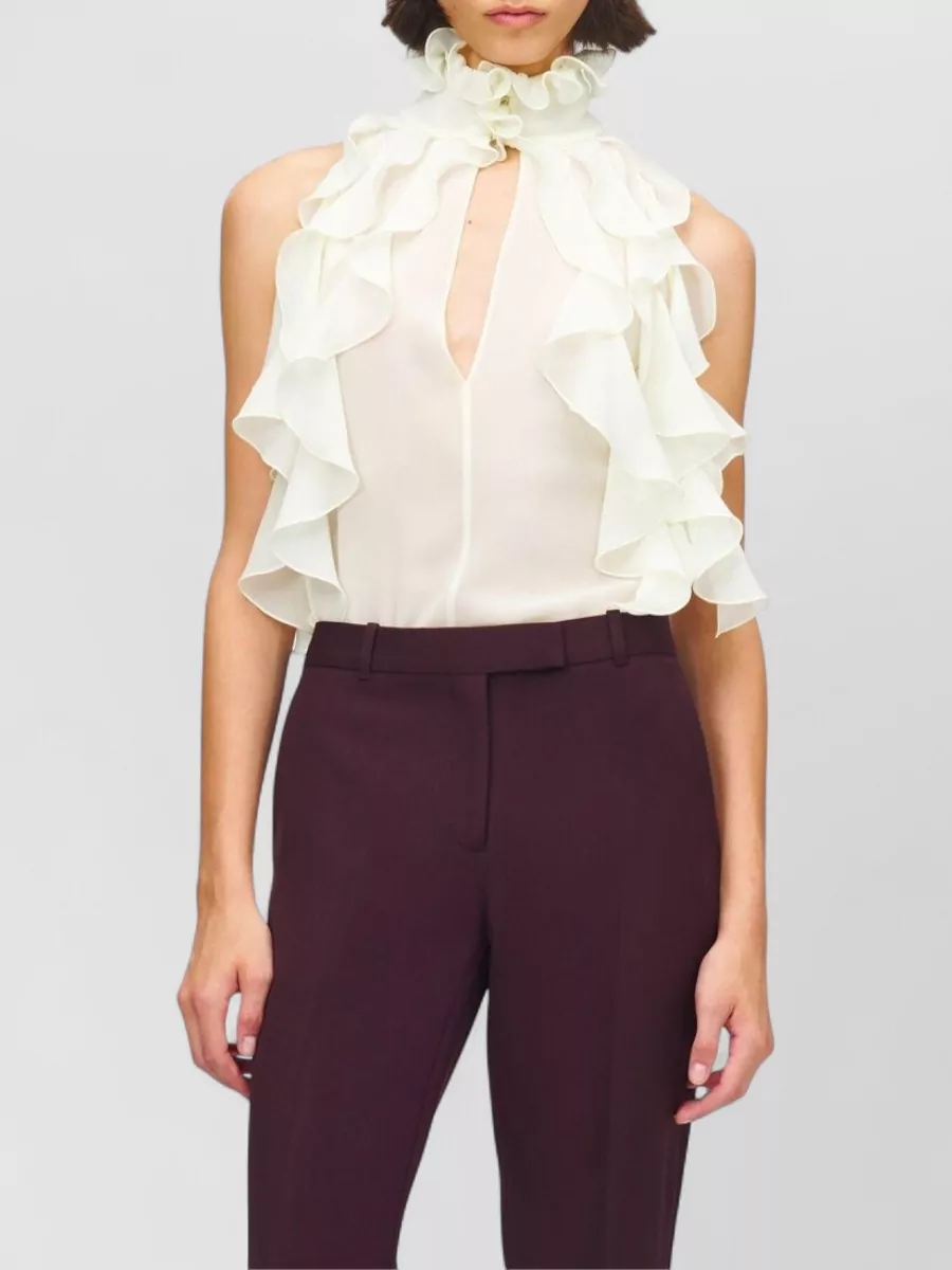 Alexander McQueen sleeveless high neck sheer ruffled top