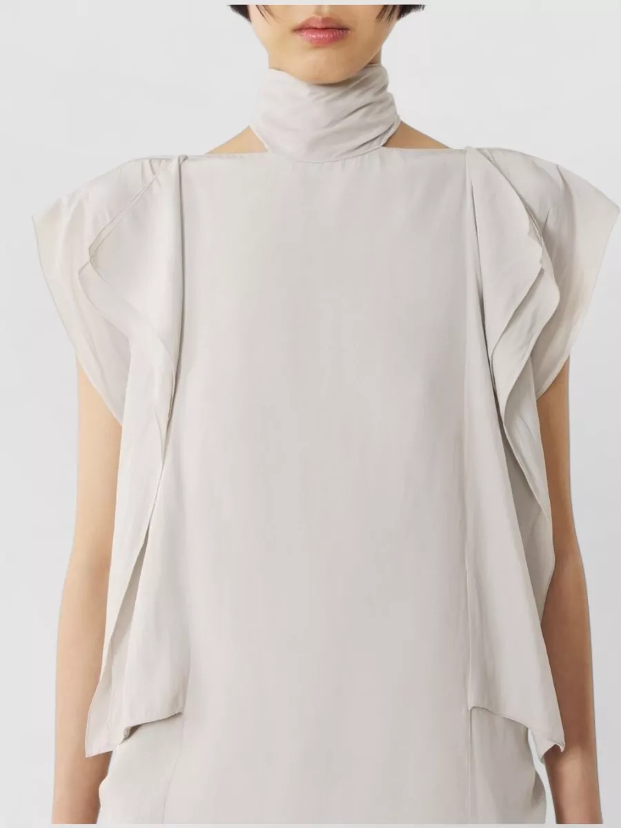 Lanvin v-neck draped blouse with jewel buttoned cuffs