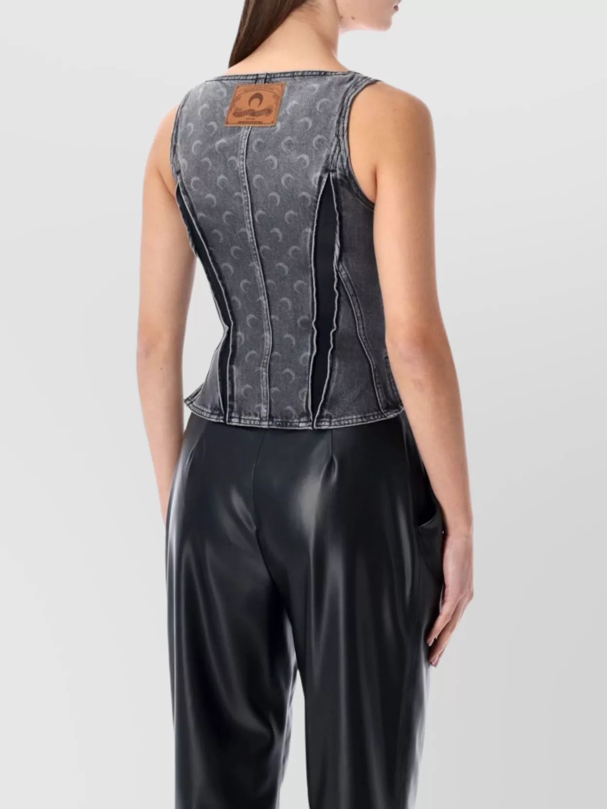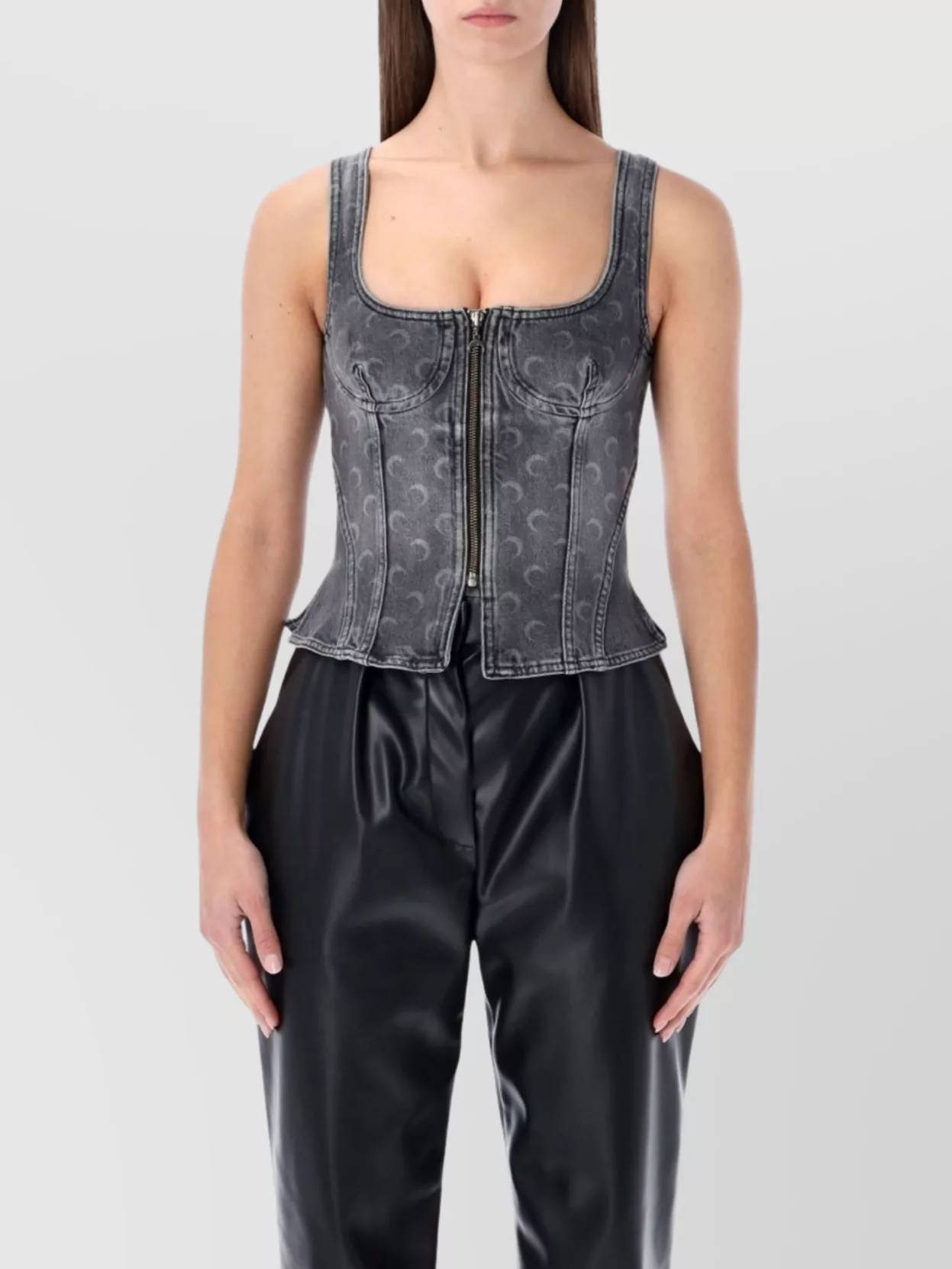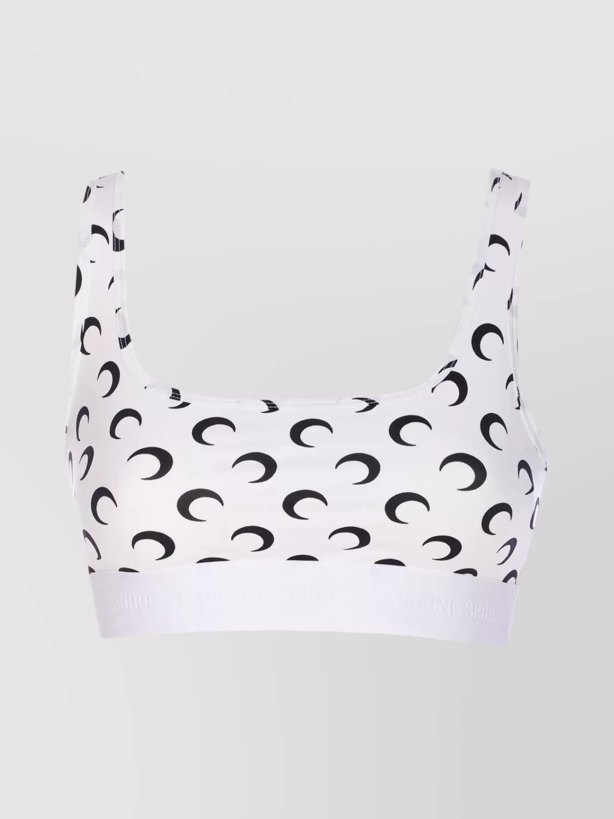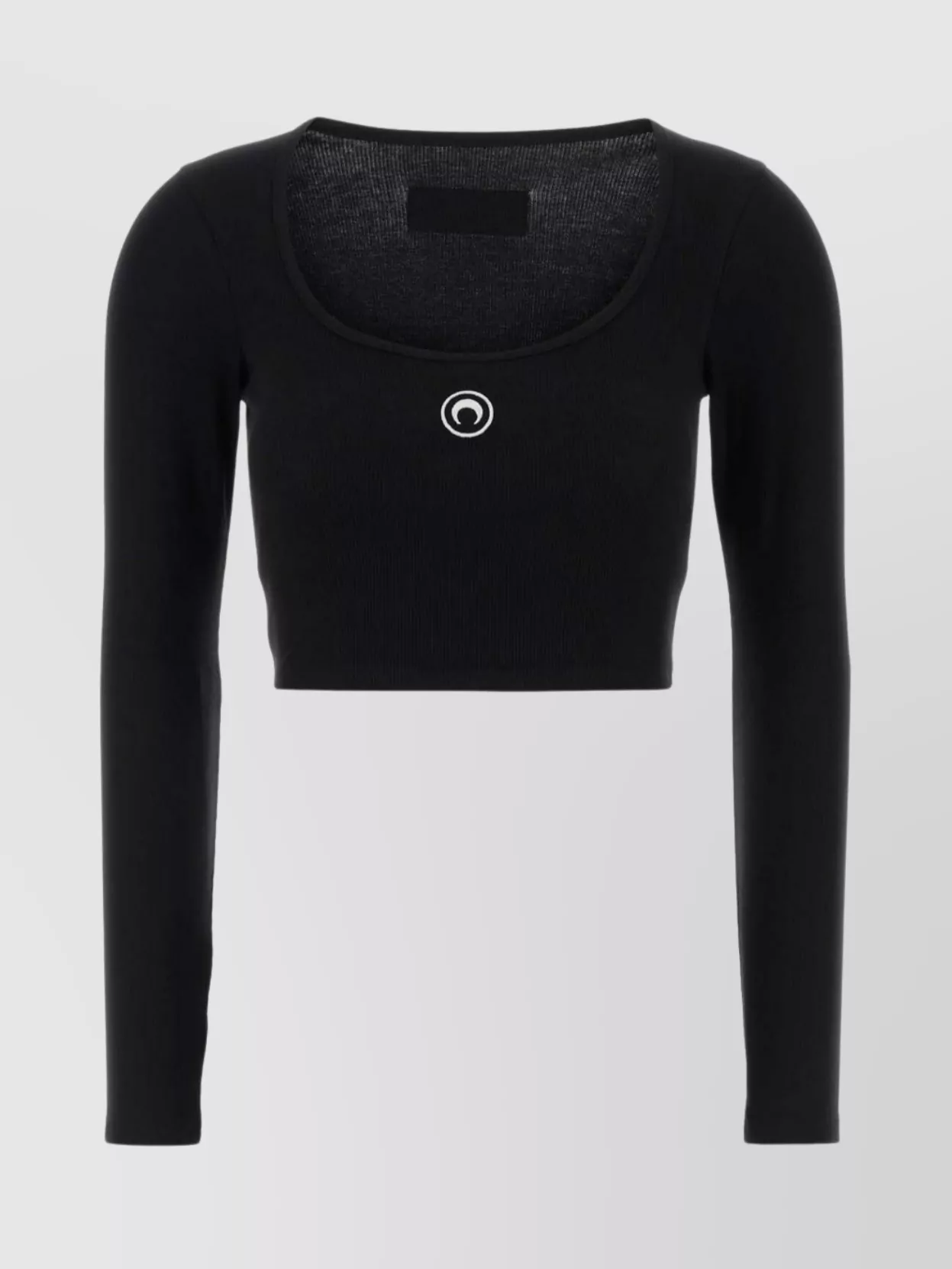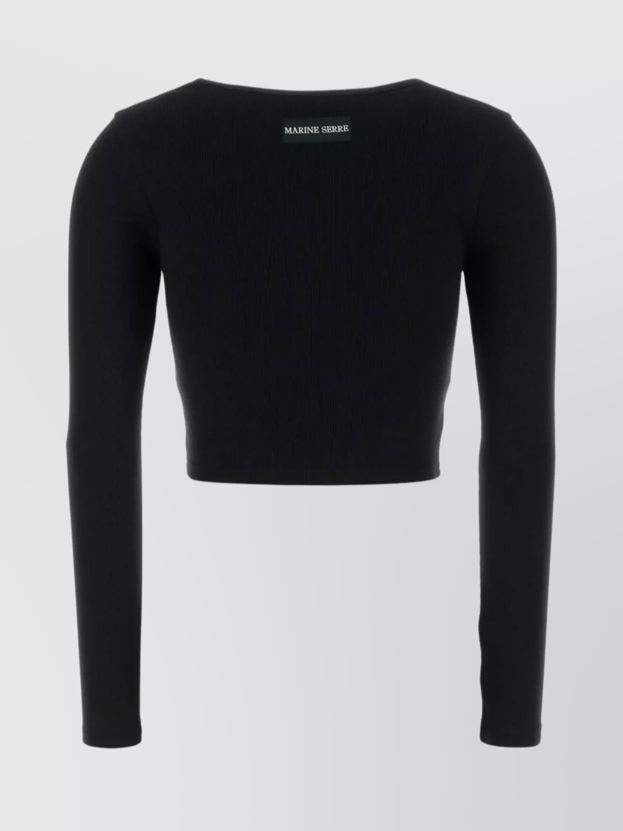 Marine Serre ribbed jersey cropped top featuring moon logo