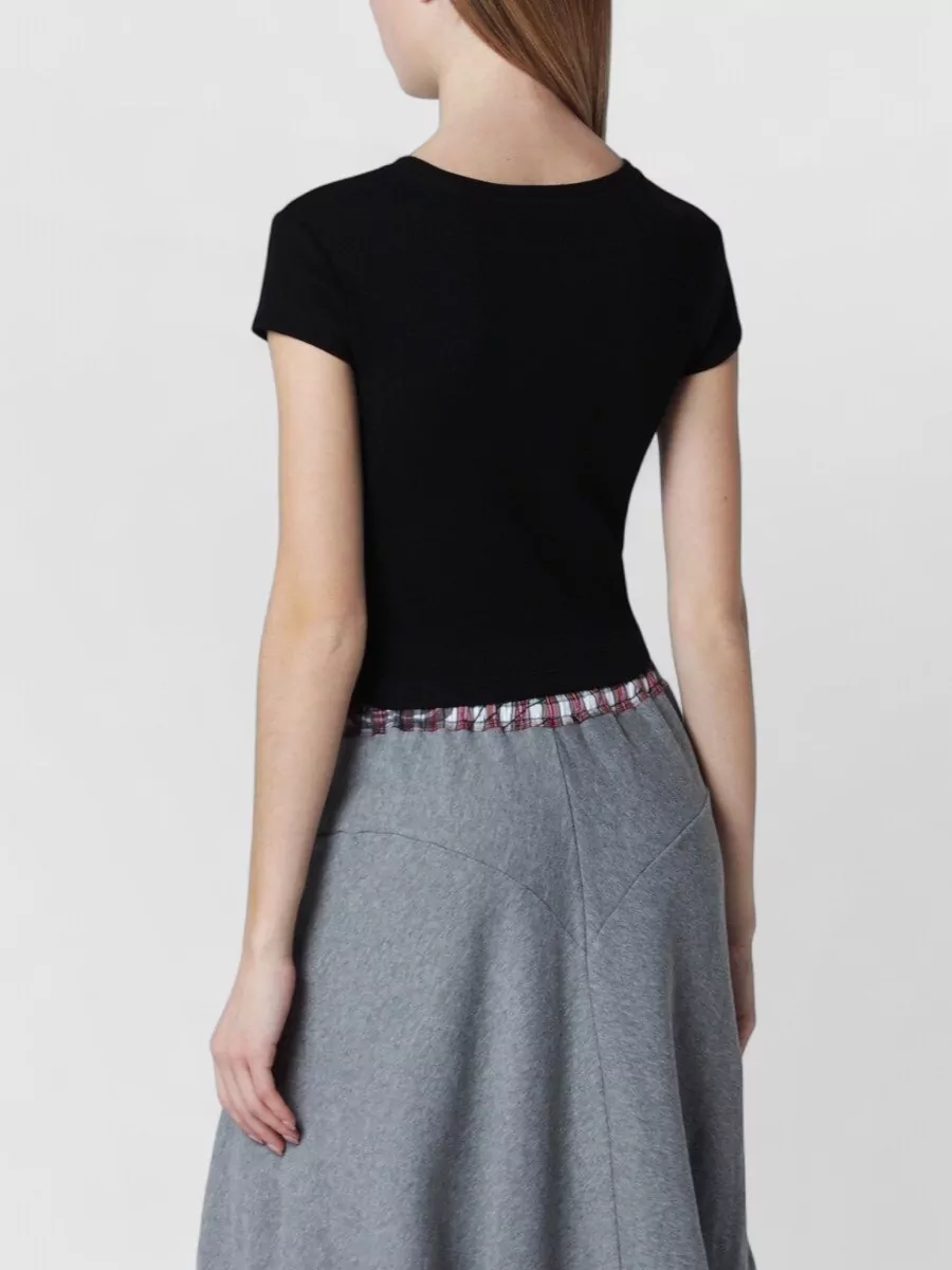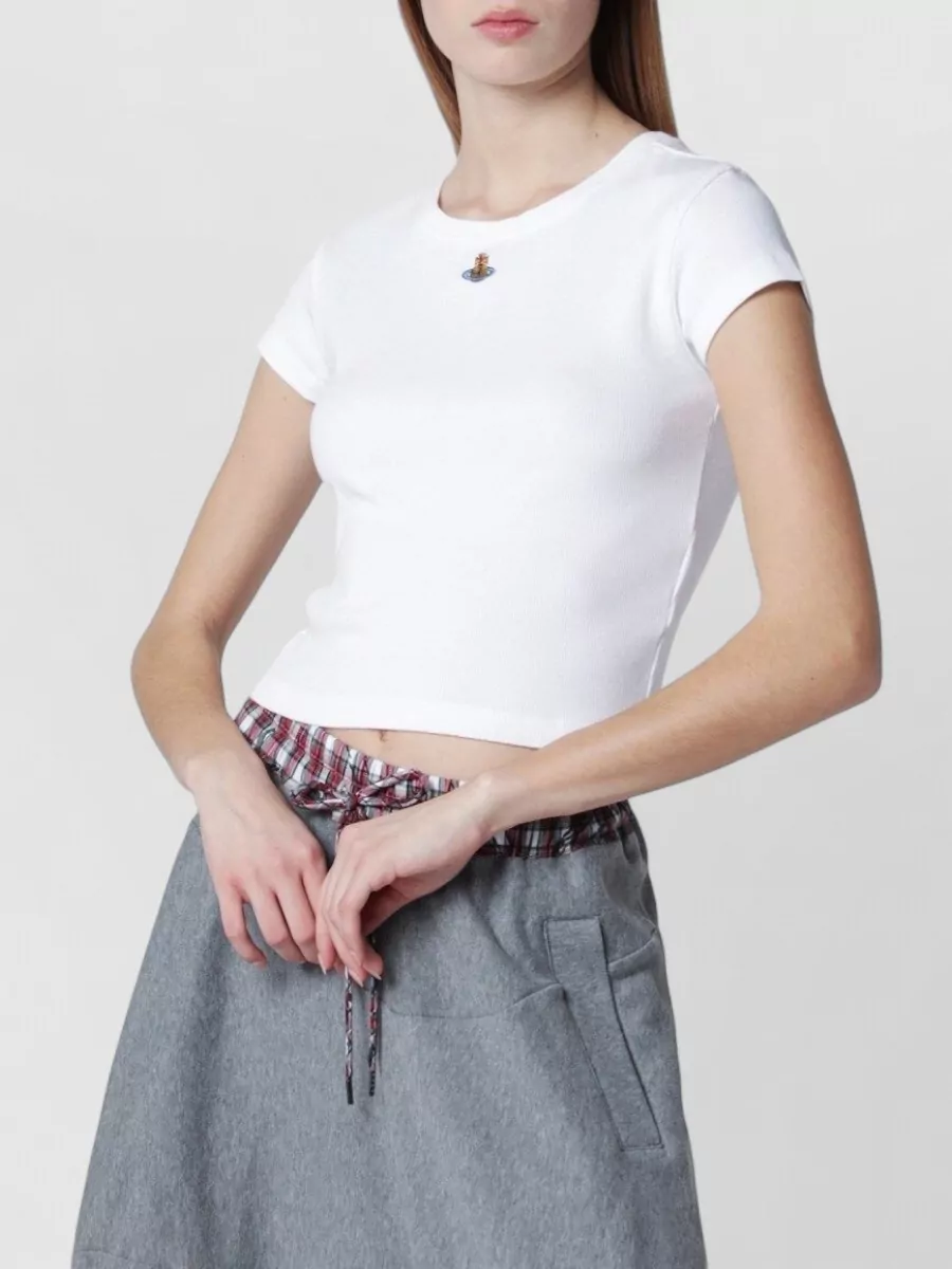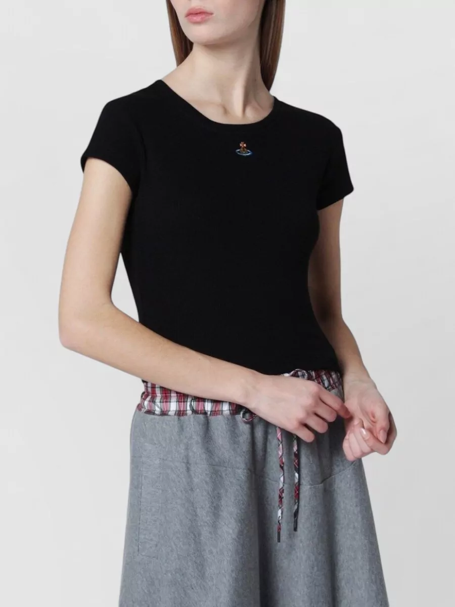 virgin wool fine ribbed slim fit mock neck short sleeve top