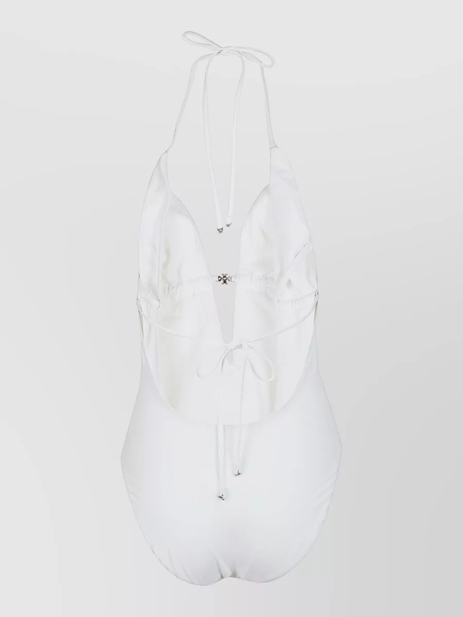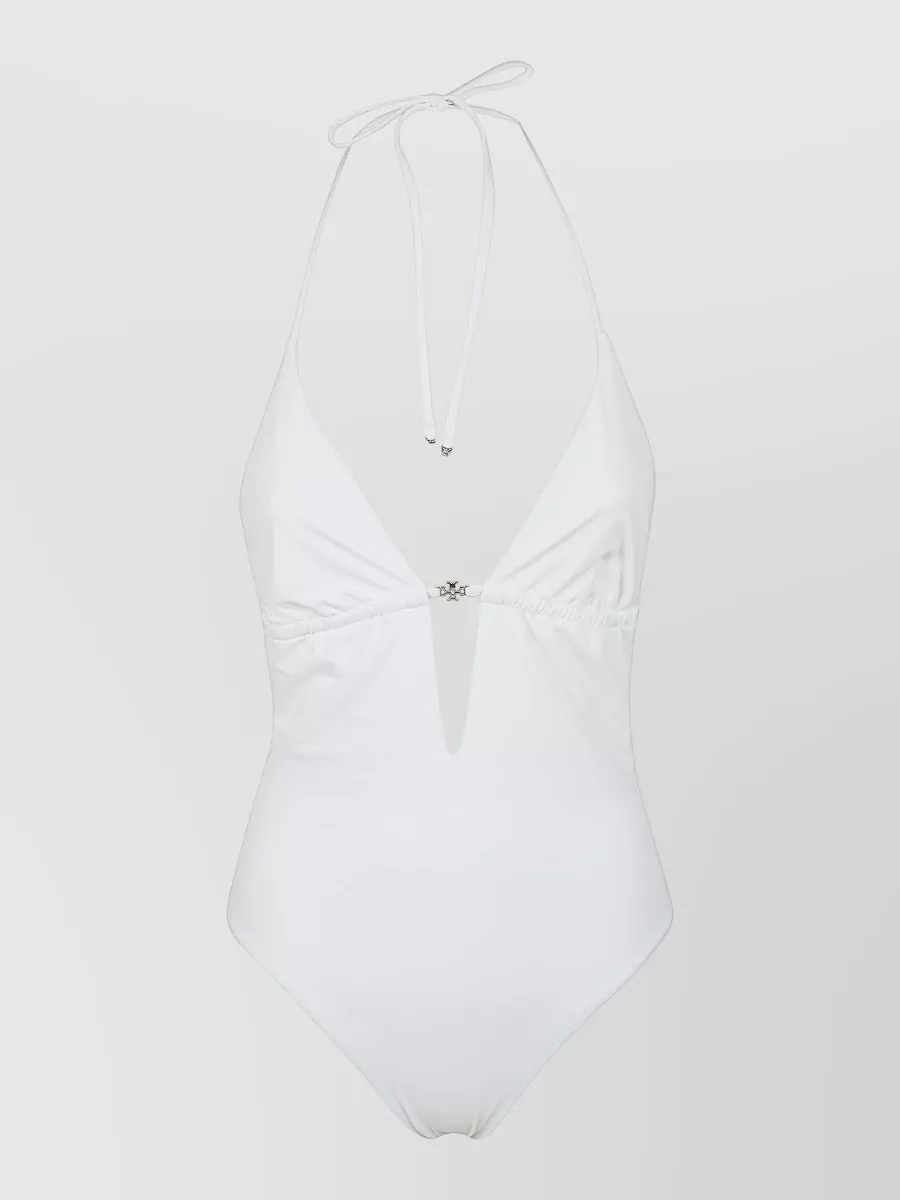 Tory Burch halter one piece swimsuit plunge metal ruched