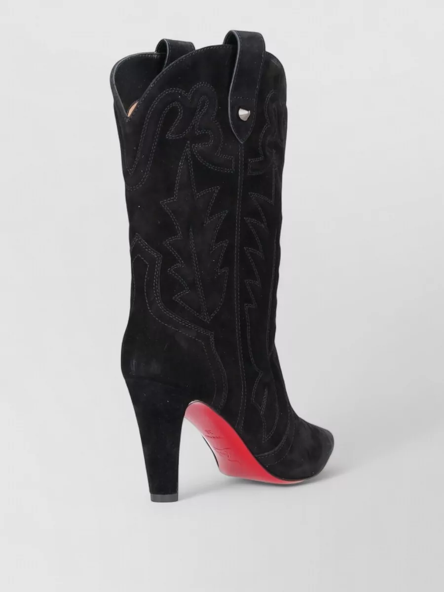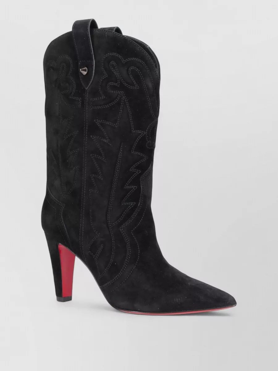 Christian Louboutin embroidered suede ankle boots pointed toe pull tabs
