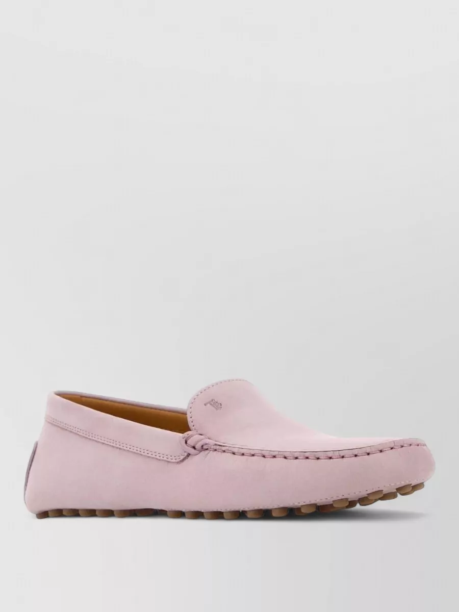 Tod's suede round toe moccasin with rubber nub sole