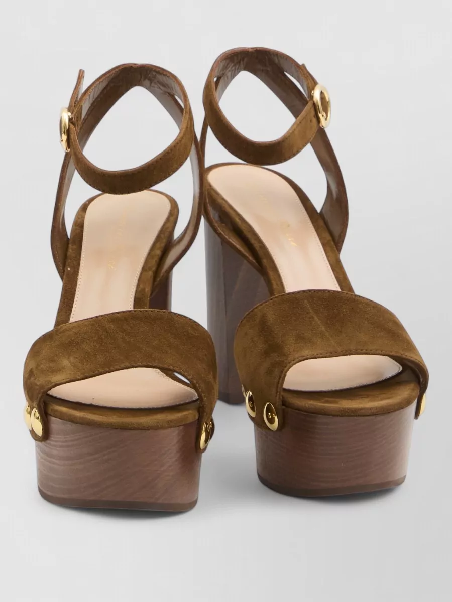 suede sandals heel gold tone studs