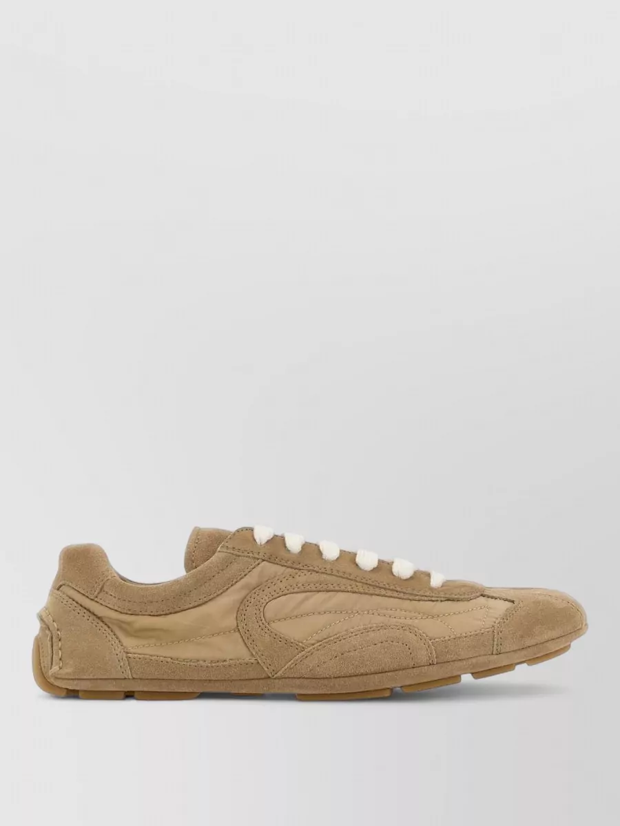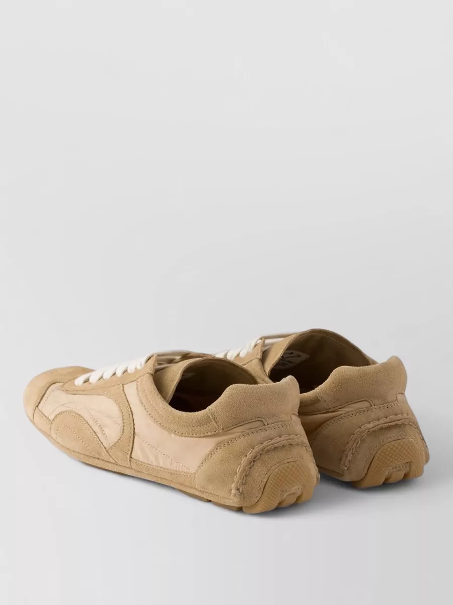 Prada montecarlo sneakers round toe suede panels rubber sole