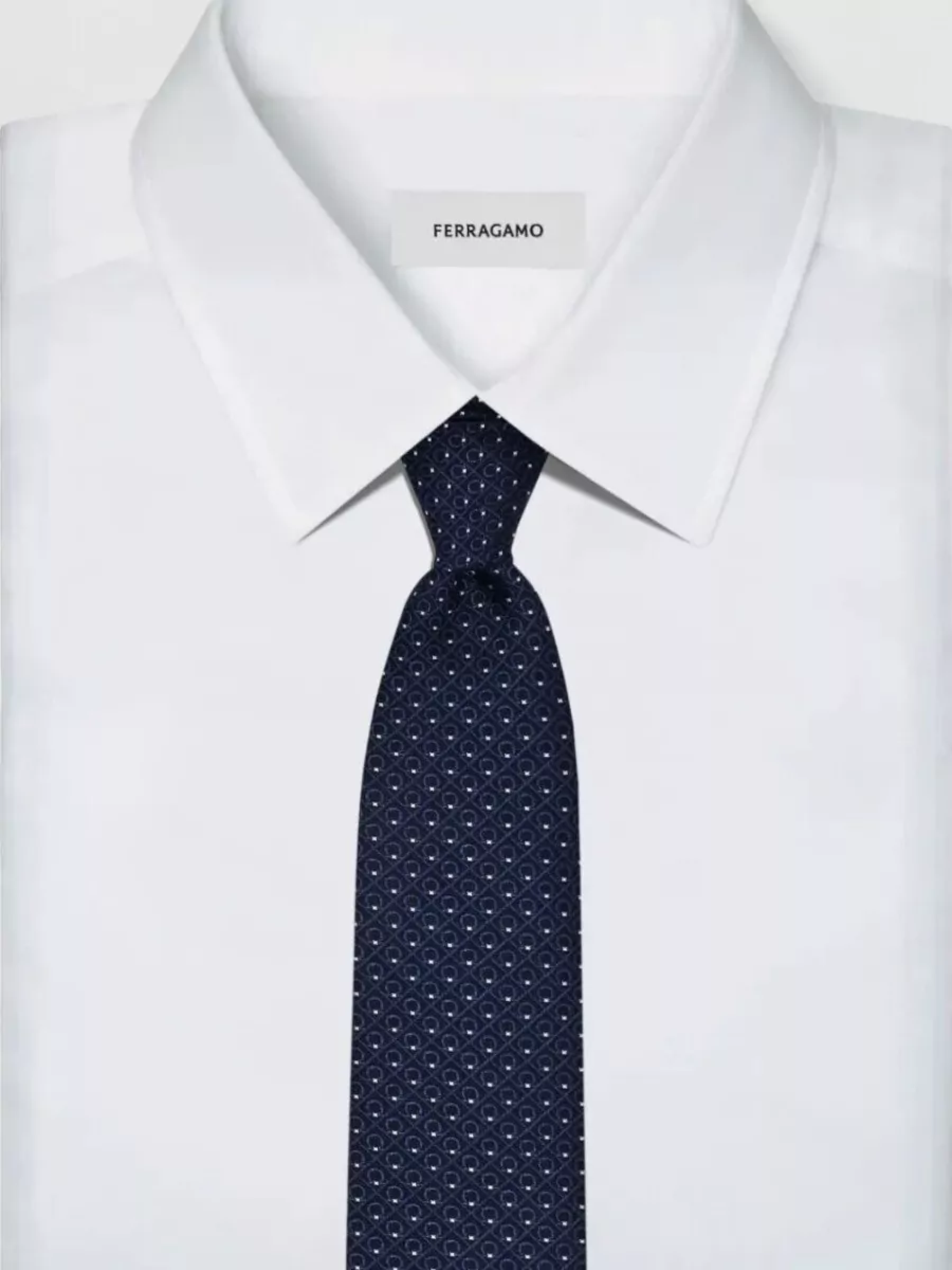 Ferragamo biella gancini jacquard silk tie pointed tip