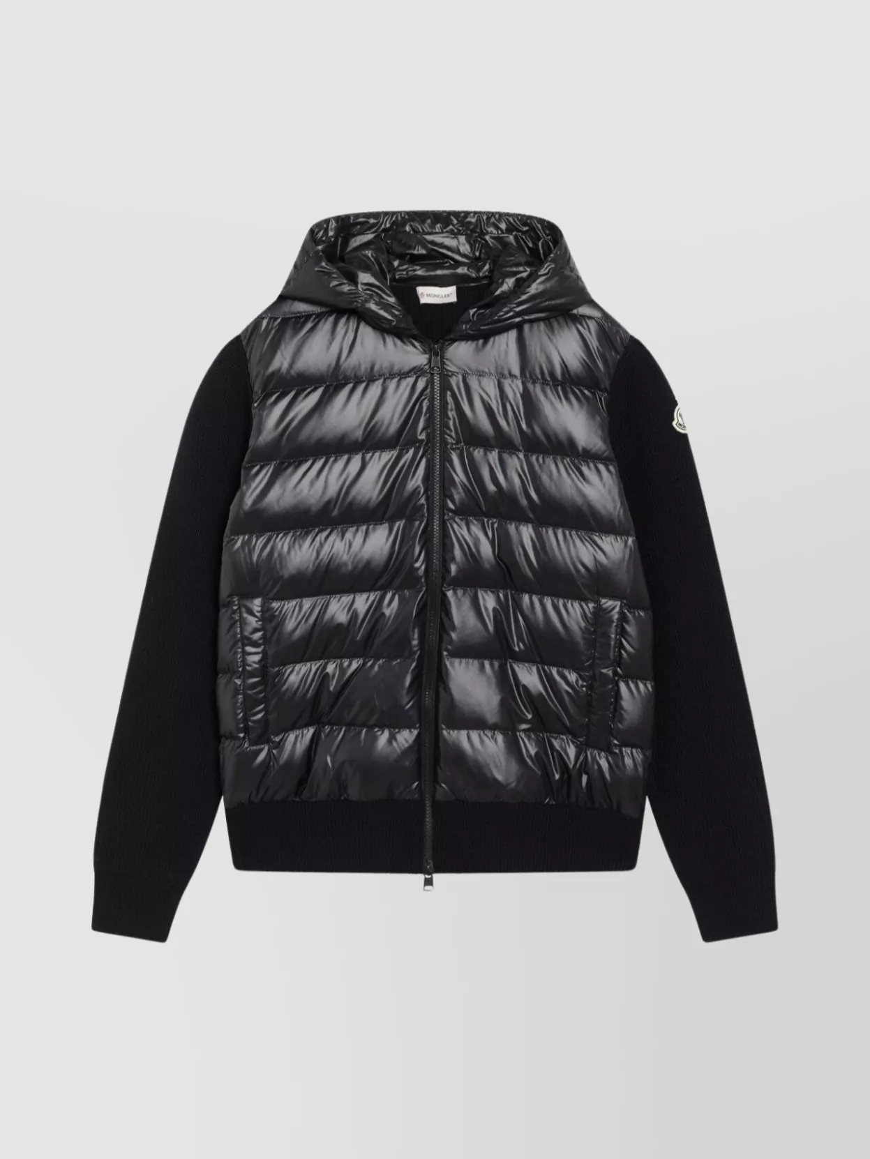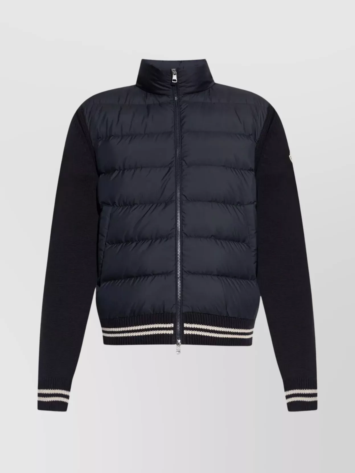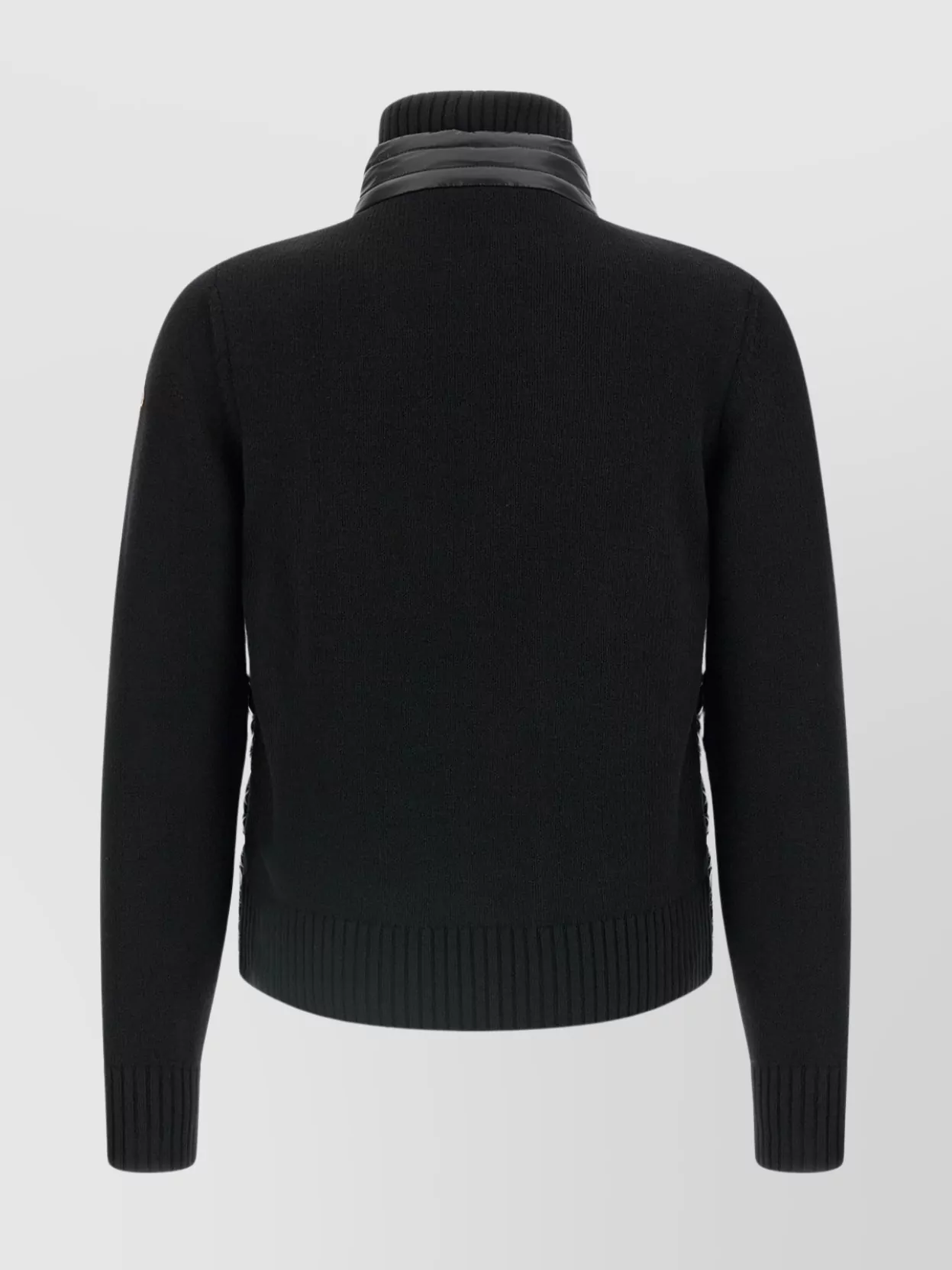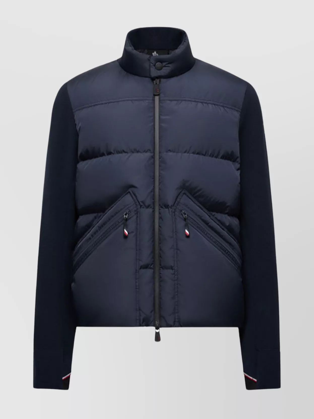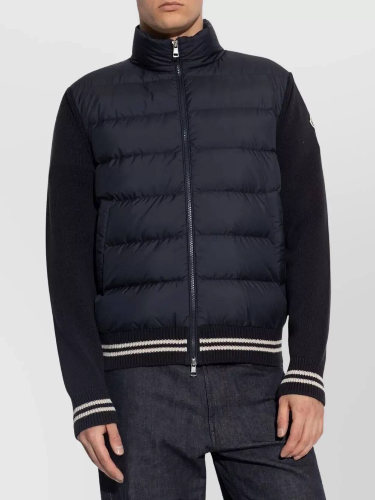 Moncler jacket featuring wool sleeves and high collar
