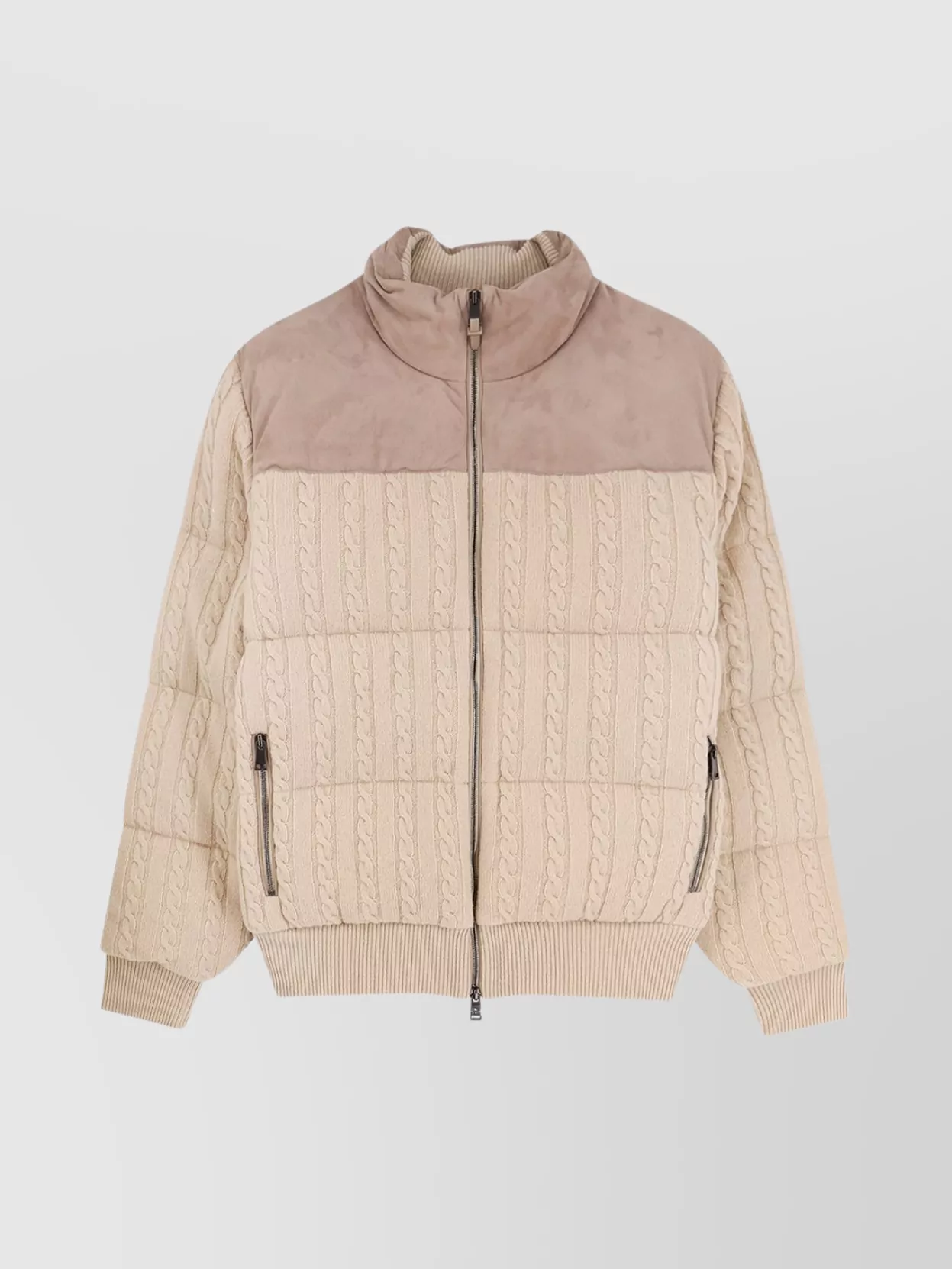 high collar puffer cardigan with zip pockets