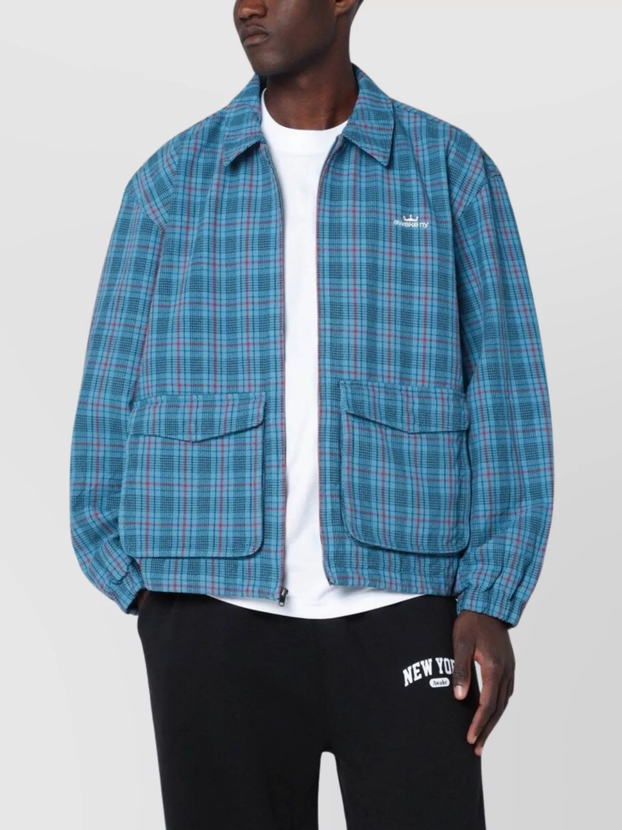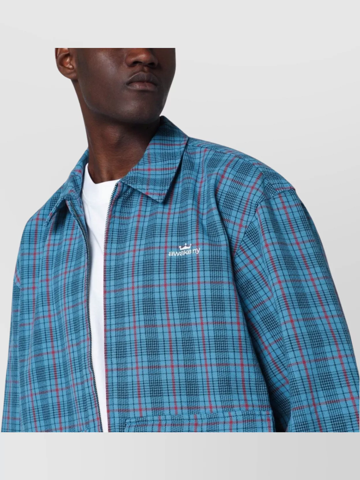 Awake Ny zip up overshirt with logo and pockets