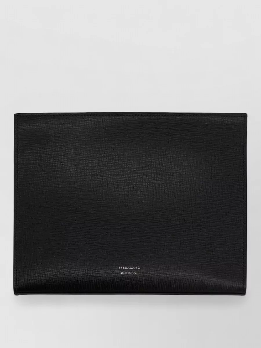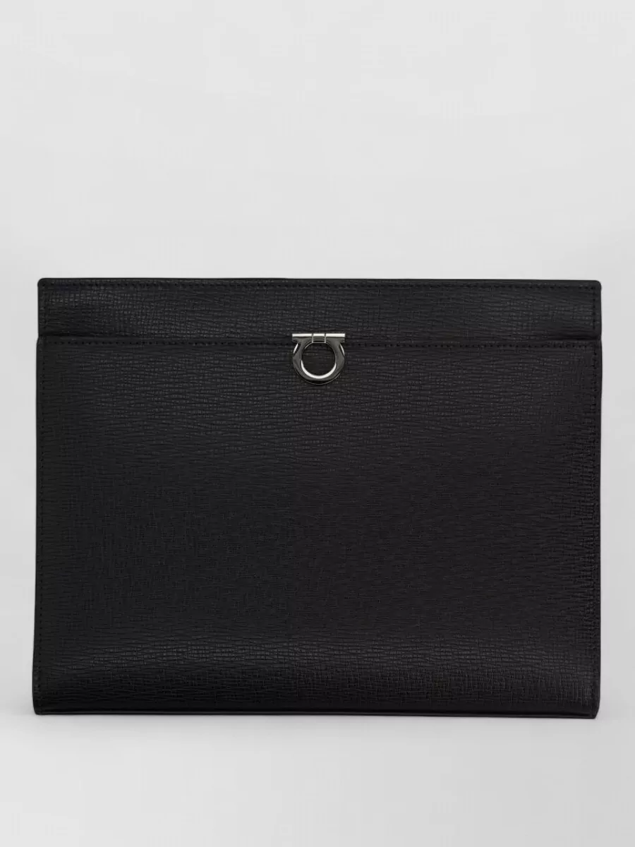 Ferragamo clutch bag metal hardware rectangular shape textured