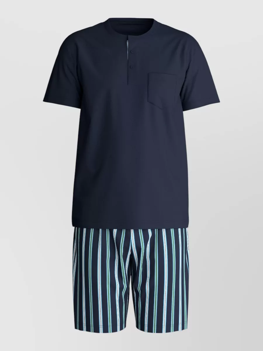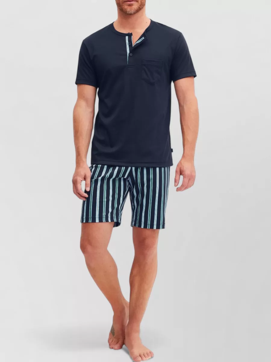 short pajama set chest pocket stripes
