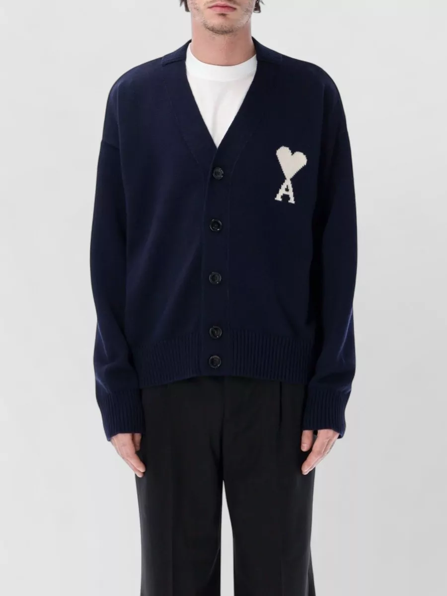 Ami Paris v-neck cardigan with ribbed cuffs and hem
