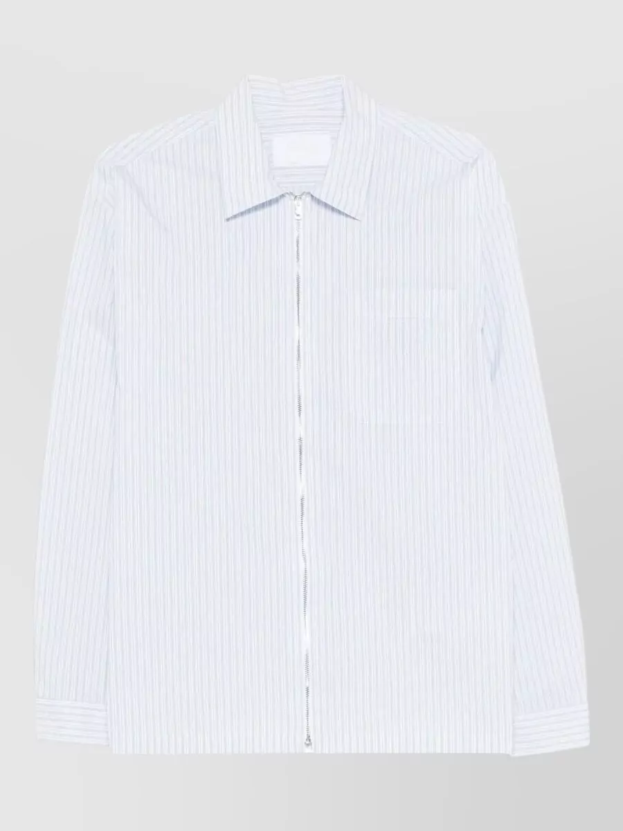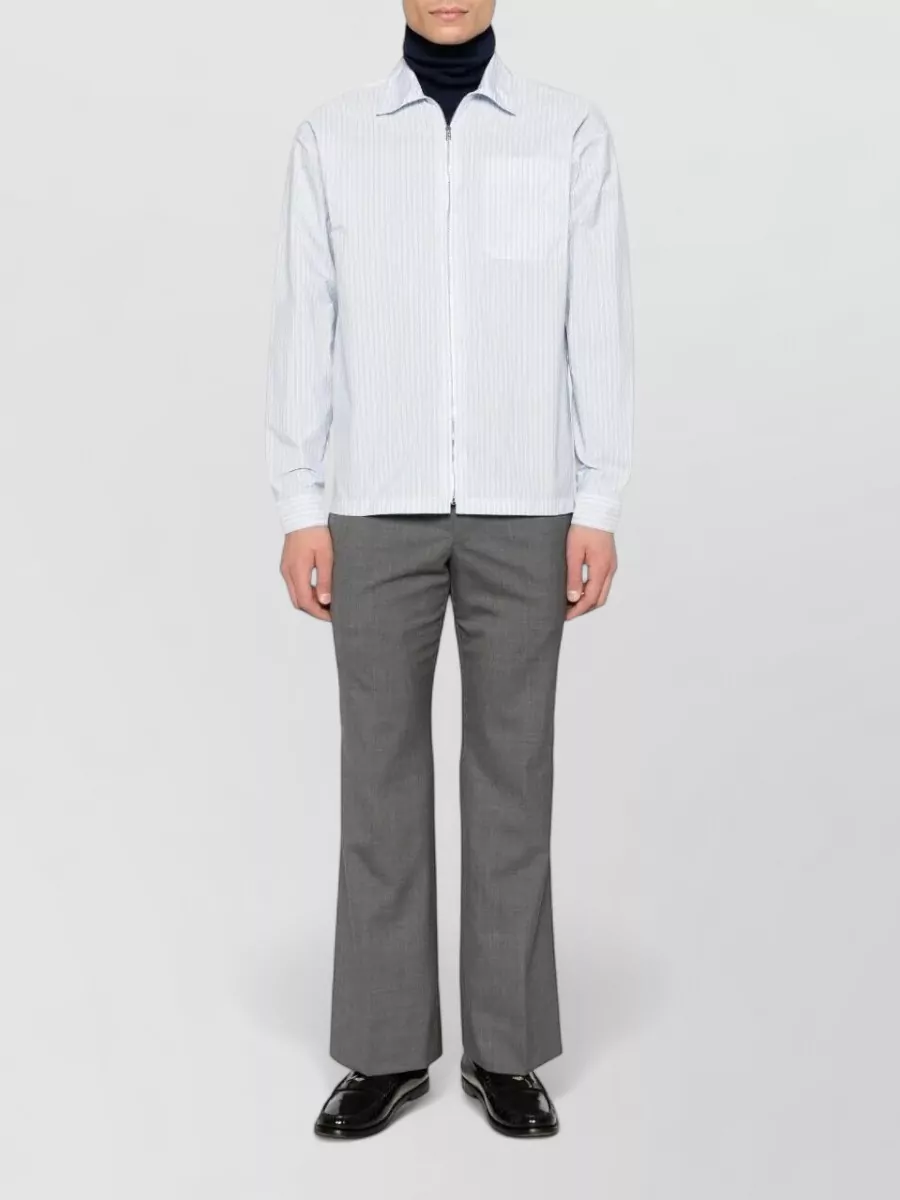 Prada striped shirt zip front point collar