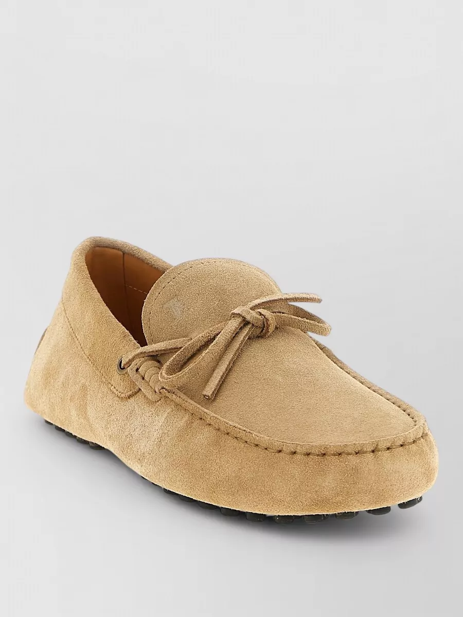 Suede loafers lace bow rubber sole