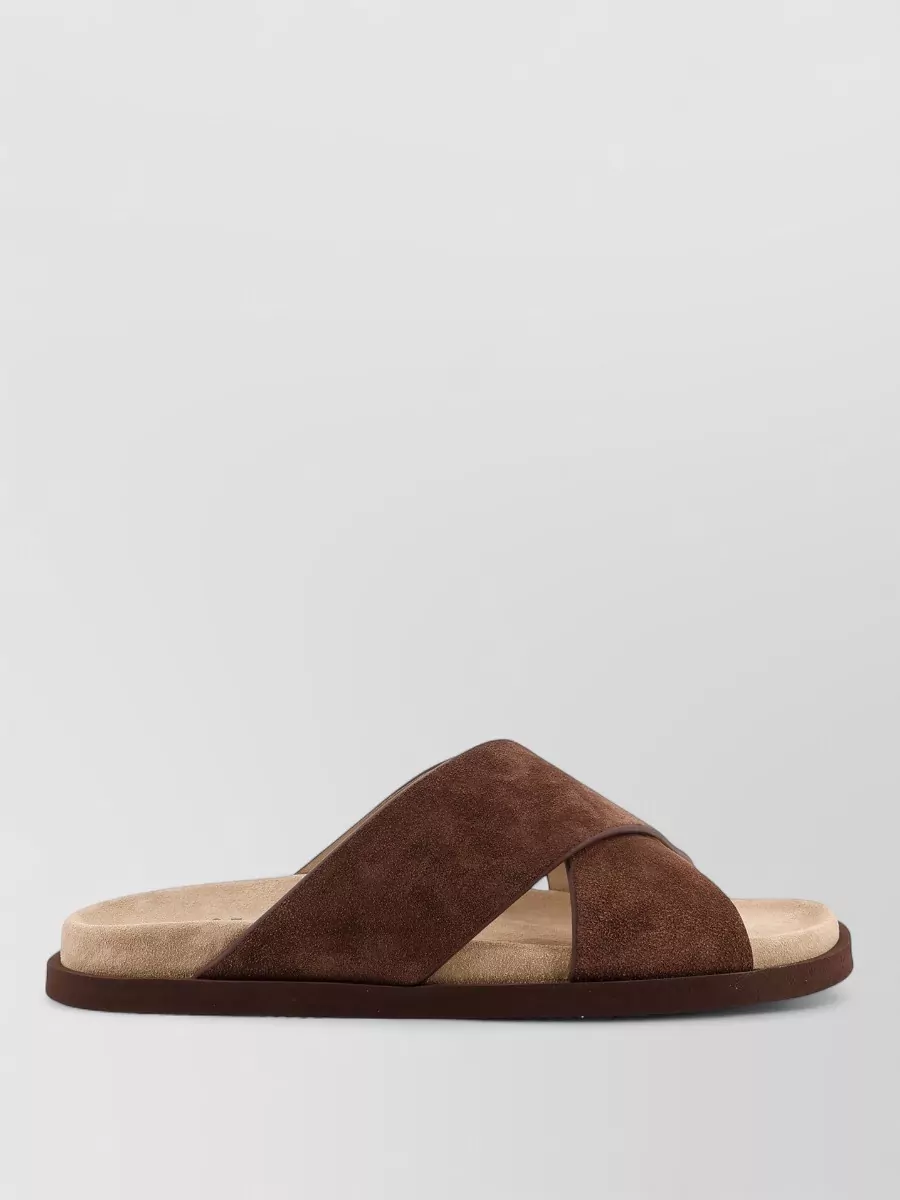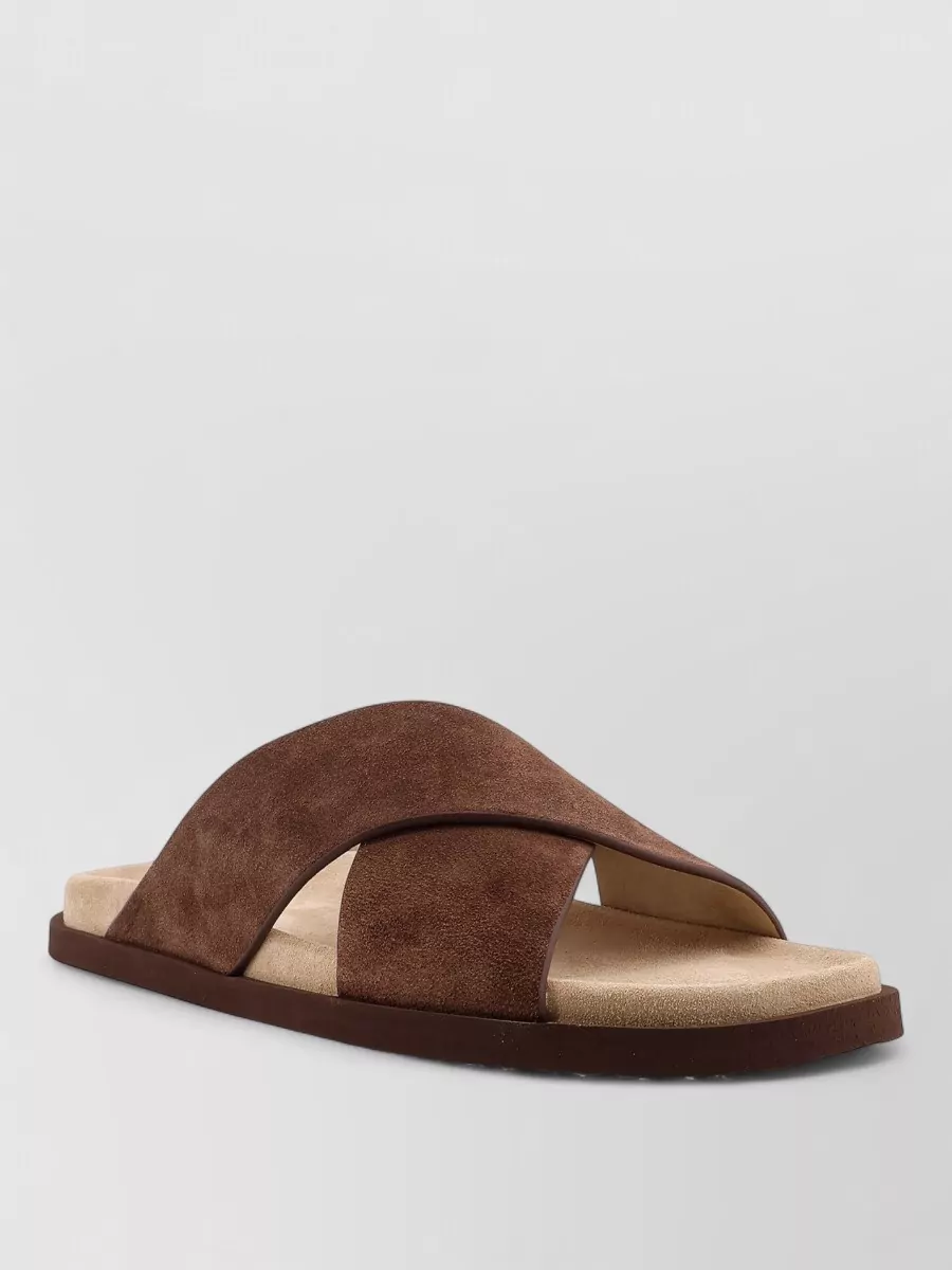 Brunello Cucinelli suede sandals cross strap flat sole