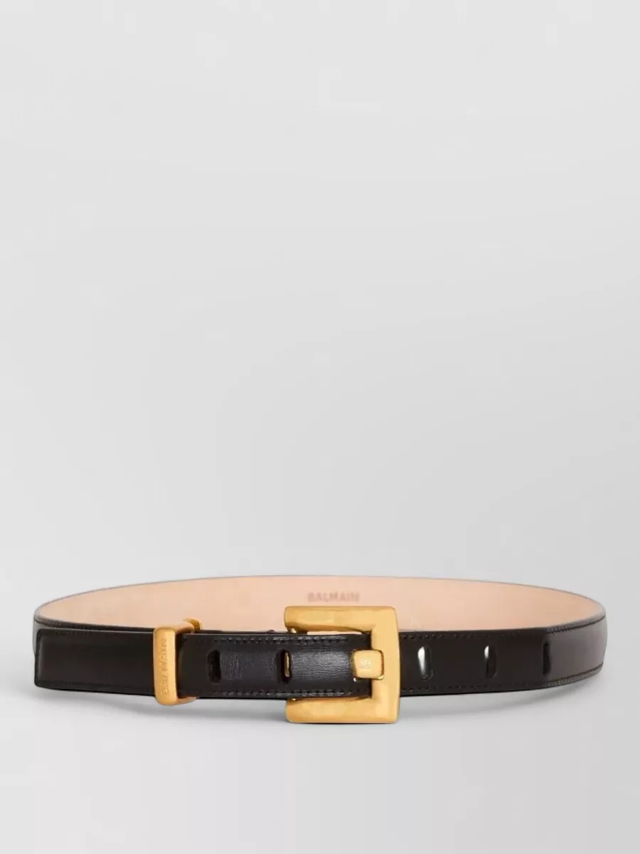 Saint Laurent smooth leather belt featuring gold-tone buckle