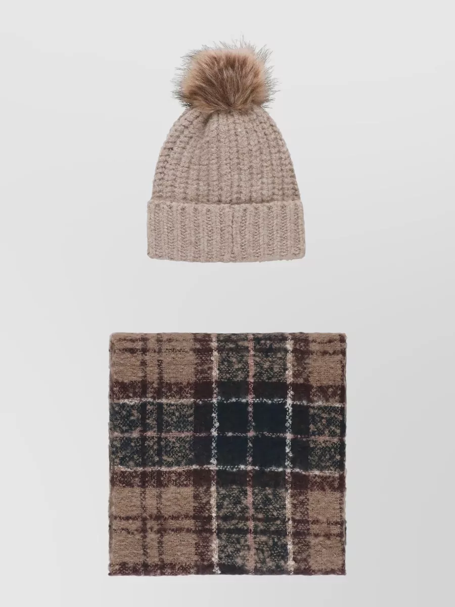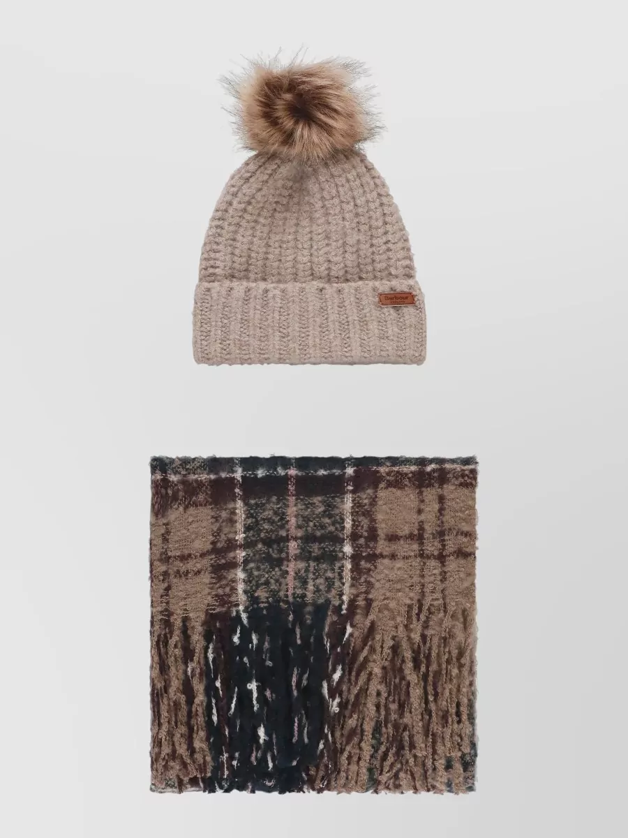 Barbour womens scarf and beanie tartan set