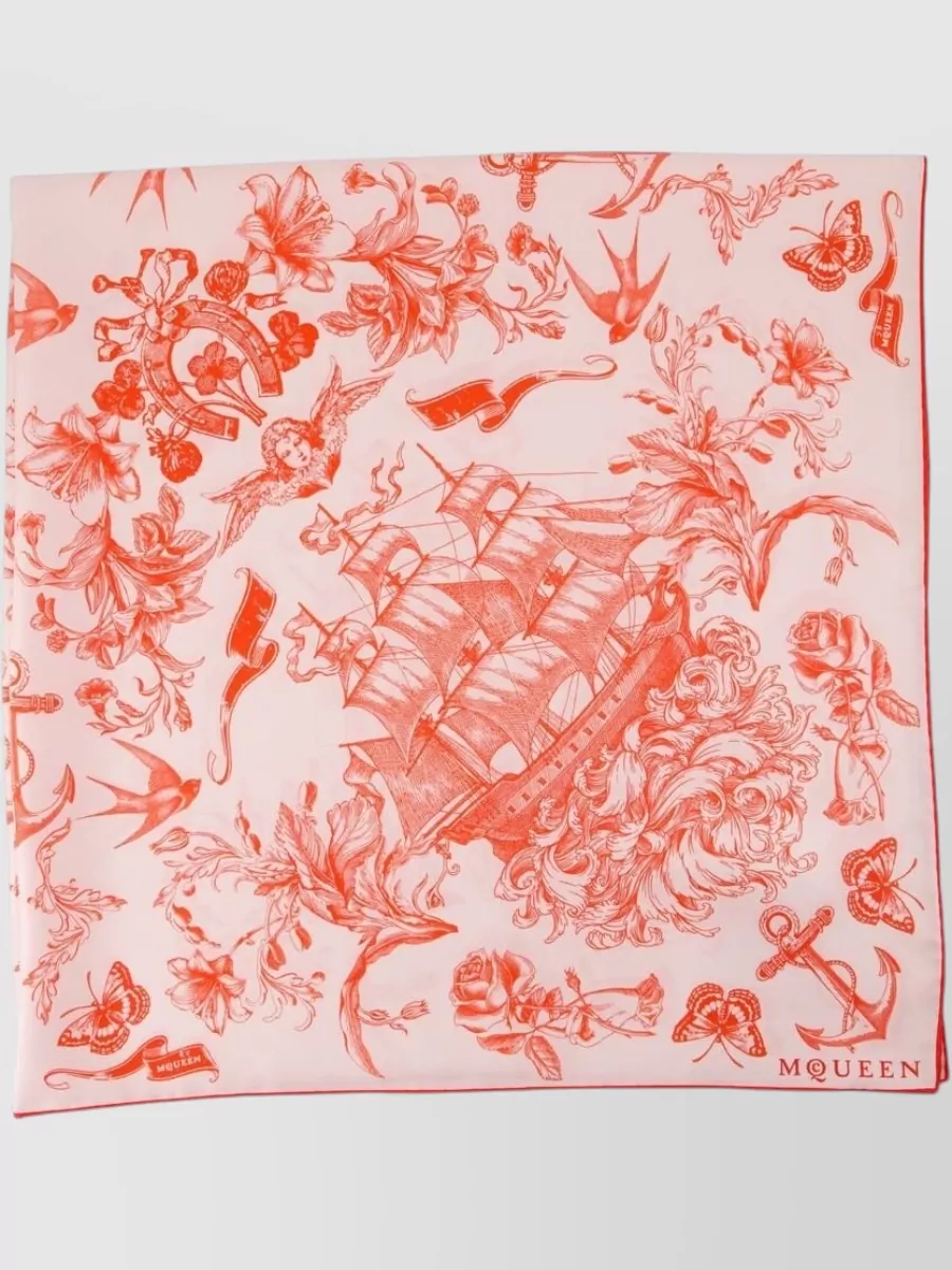 Alexander McQueen silk foulard anchor butterfly floral motifs