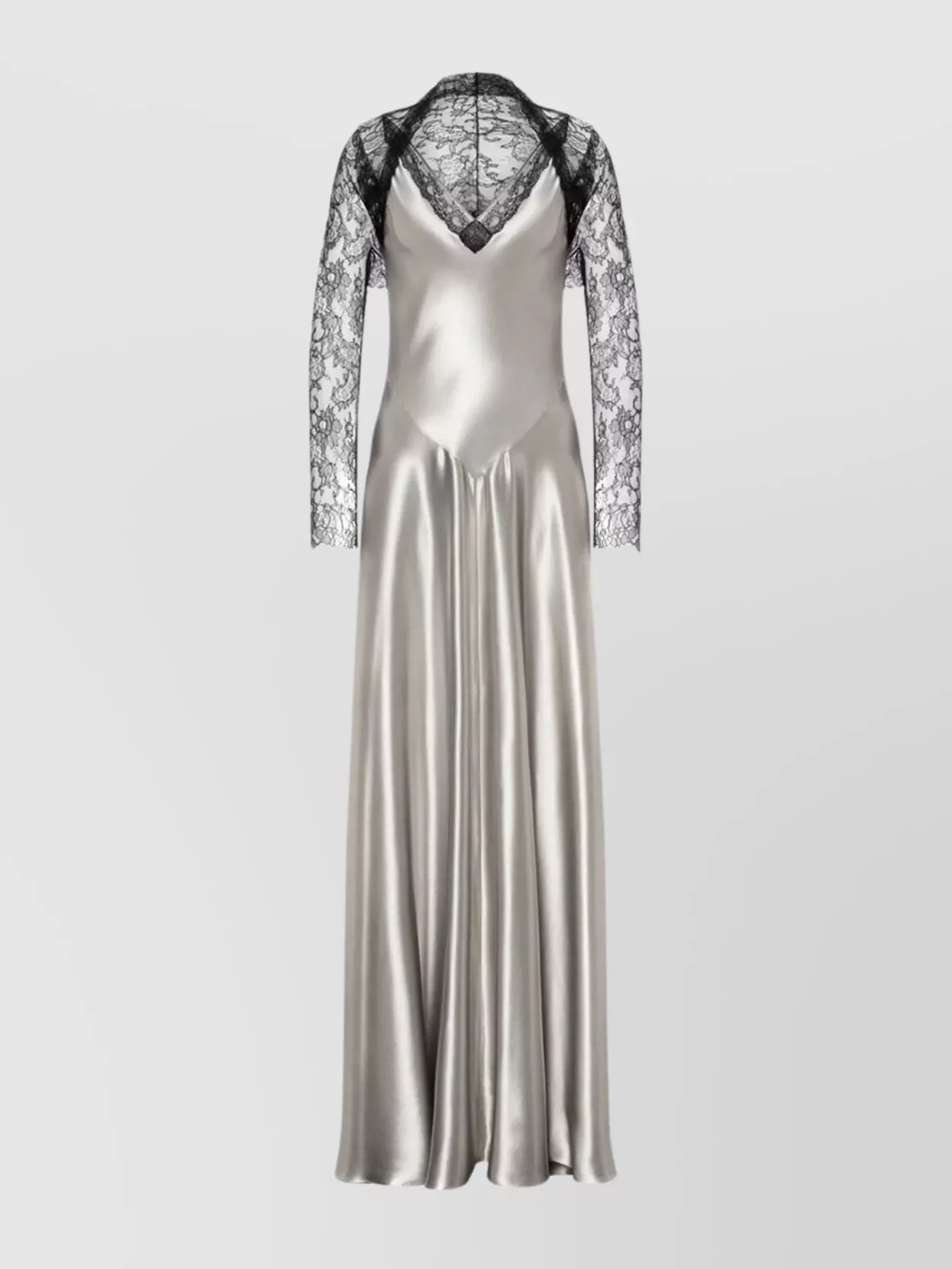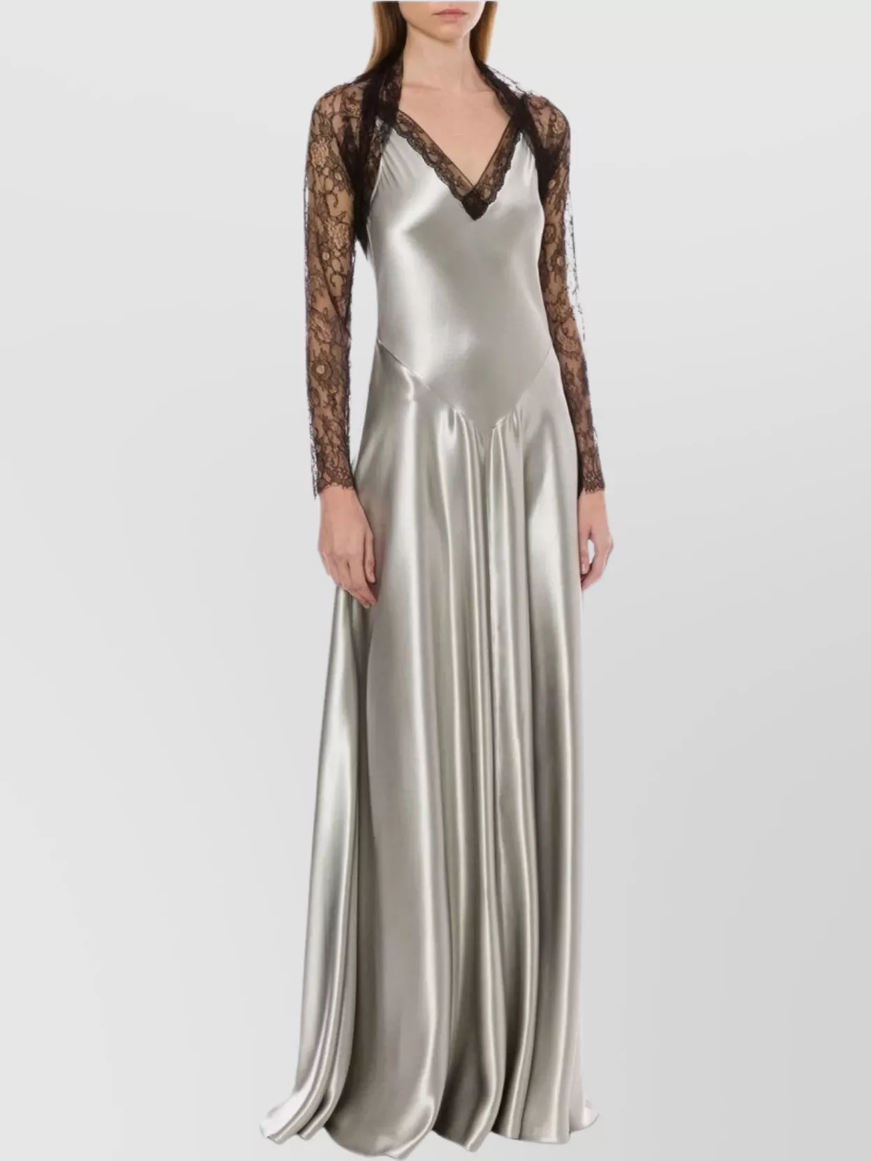 Alberta Ferretti backless satin long sleeve floor-length dress