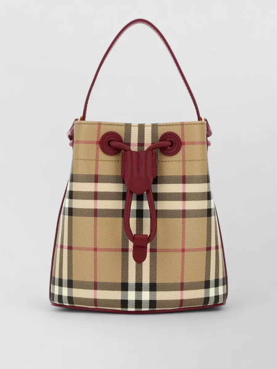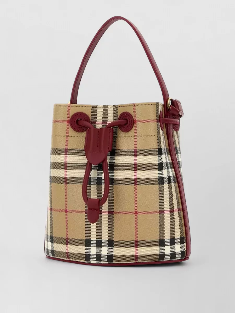 Burberry check pattern canvas bucket bag with top handle and leather trim