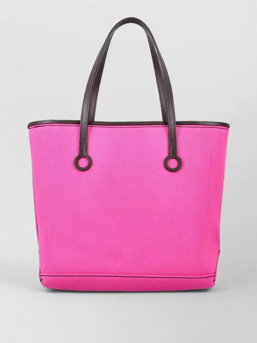two-tone canvas and leather corner shopping bag