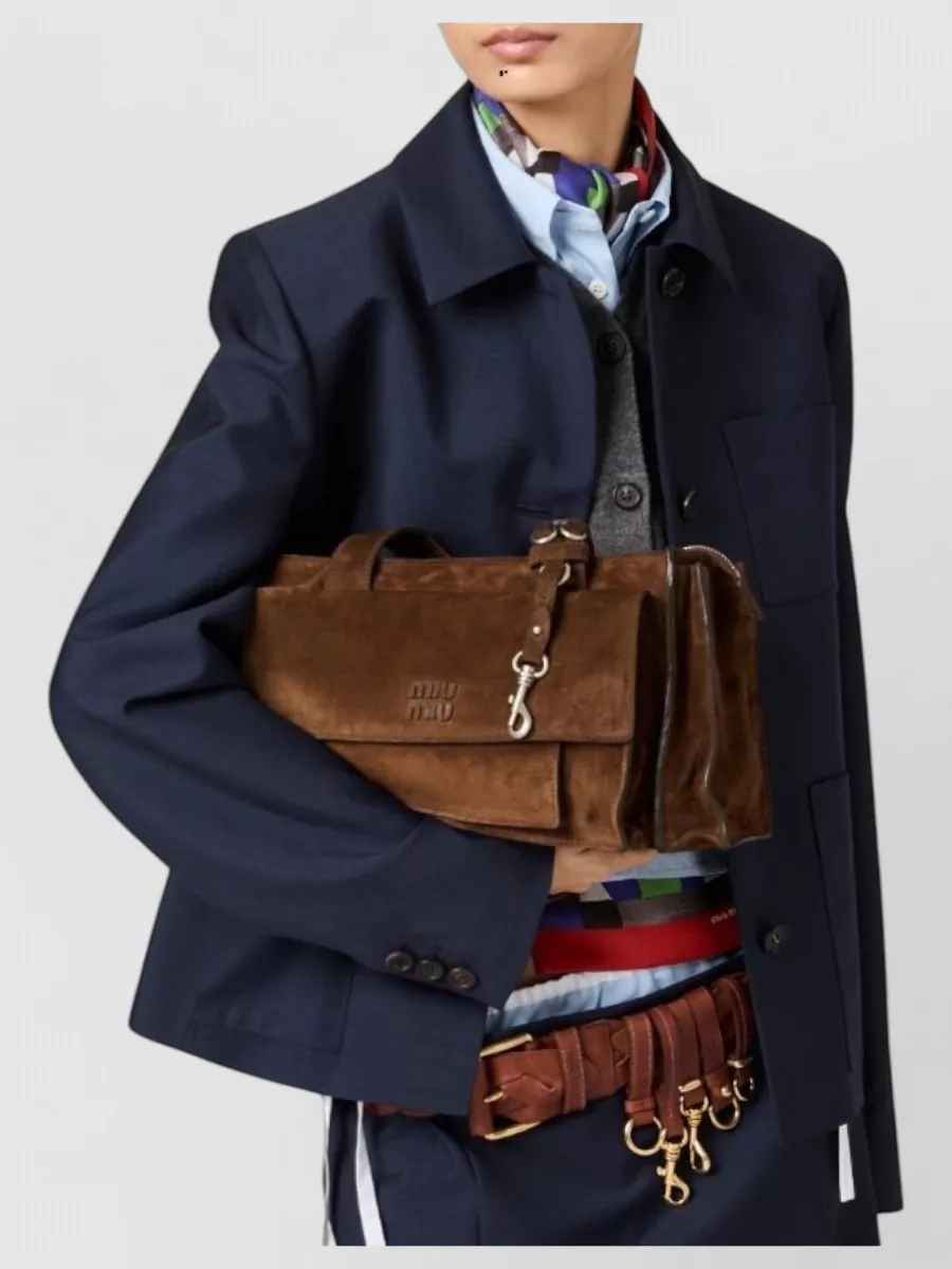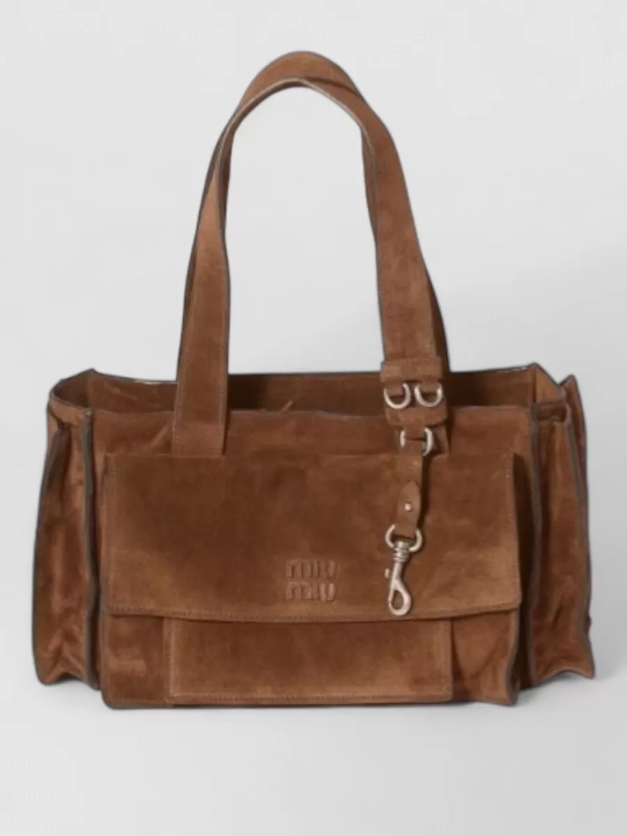 Miu Miu tote bag front flap pocket metal hardware