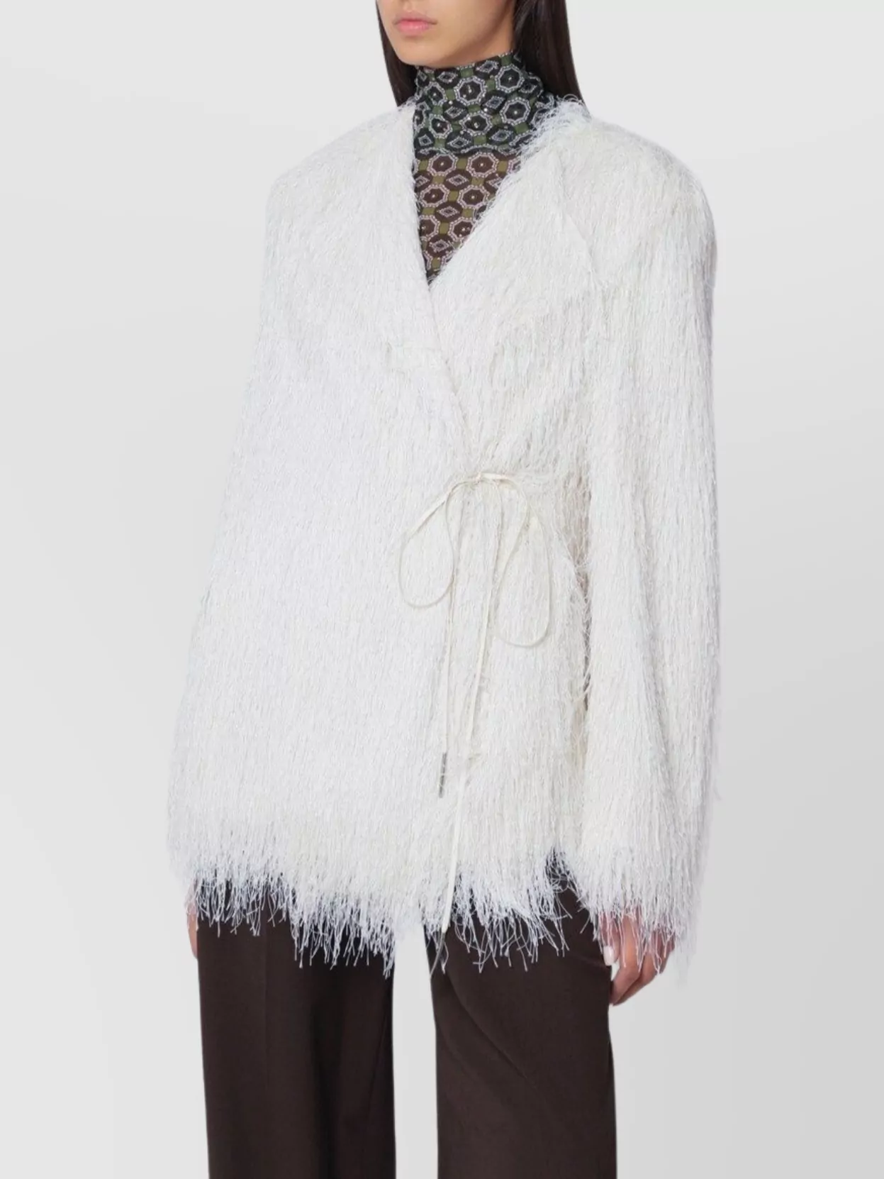Dries Van Noten fringed jacket with waist tie and long sleeves