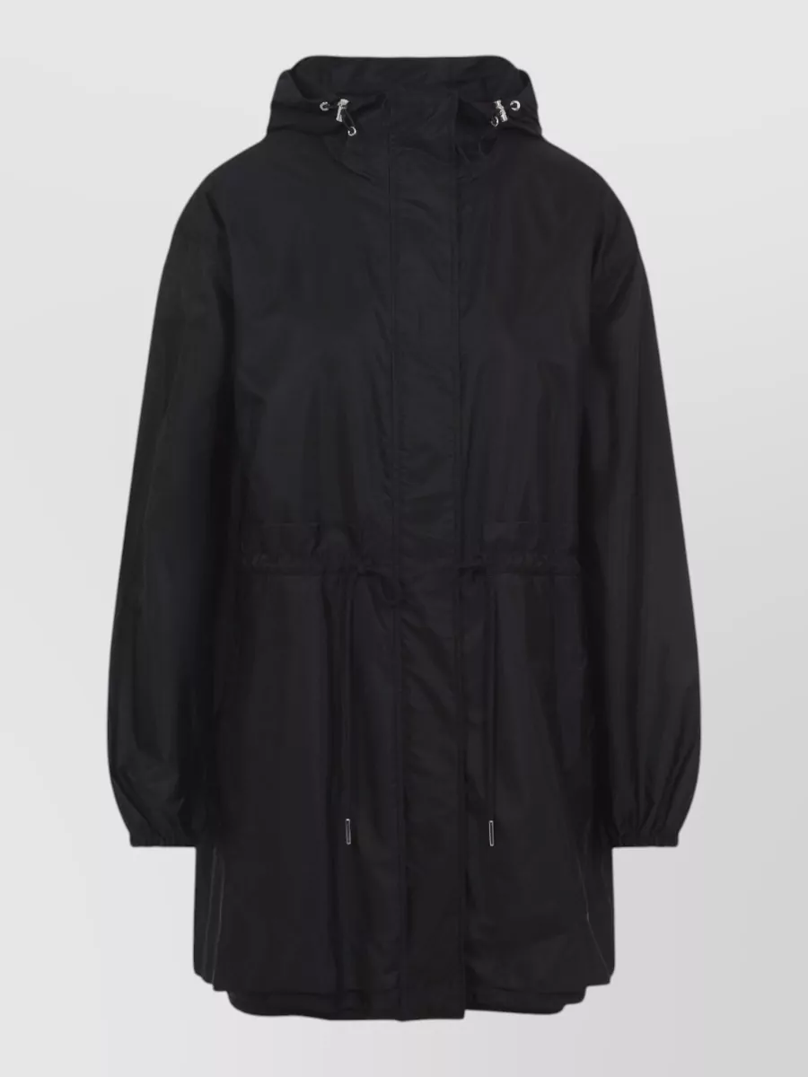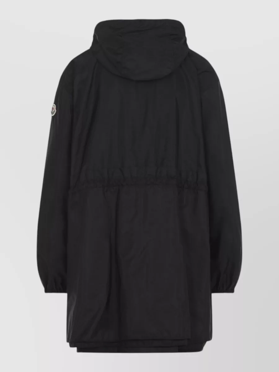 Moncler long hooded coat elastic cuffs drawstring waist